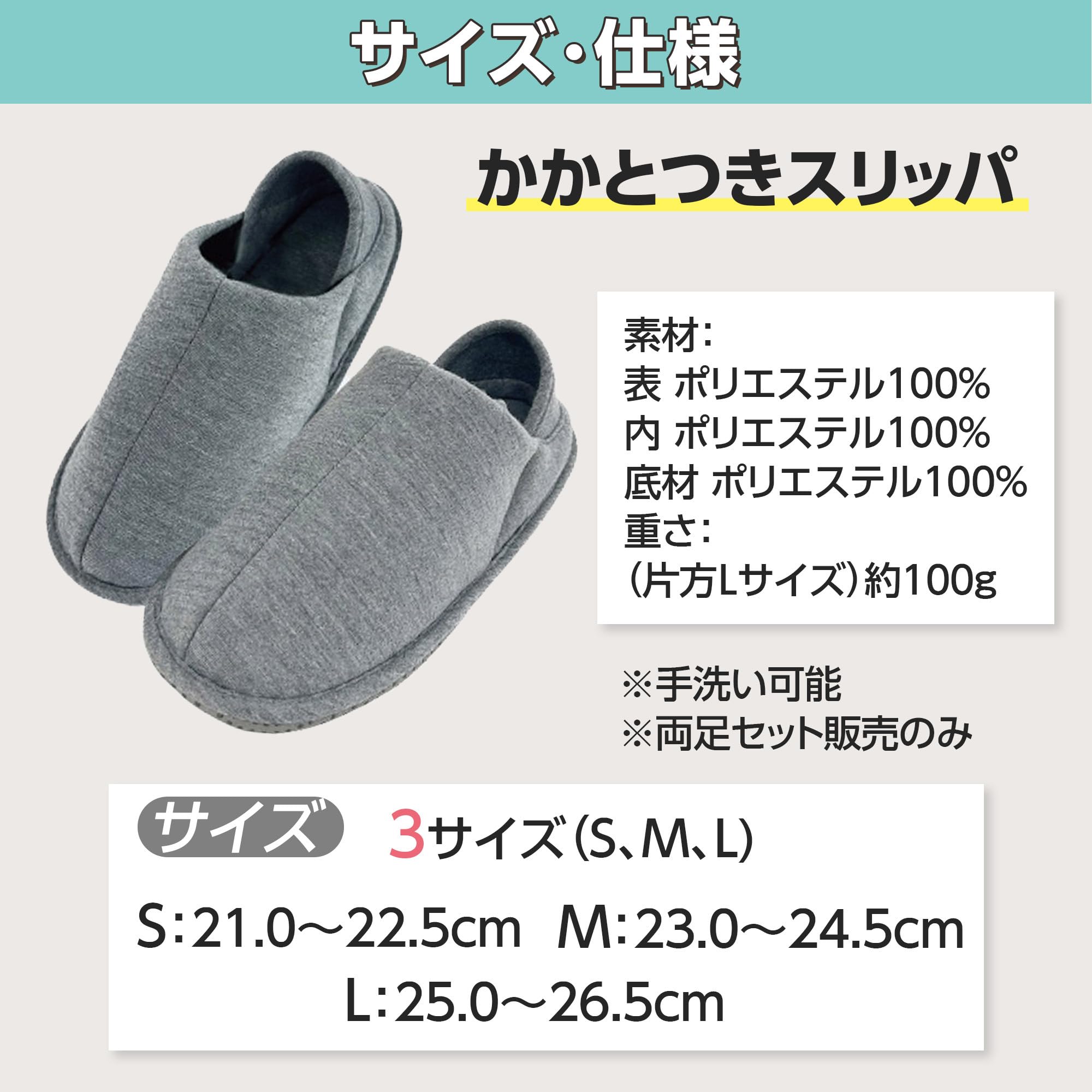 【仕様・サイズ・カラー】<仕様>徳武産業/あゆみ シリーズ/かかとつきスリッパ/足囲3E相当/両足 <サイズ>3展開(S[21.0~22.5cm]、M[23.0~24.5cm]、L[25.0~26.5cm]) <カラー>グレー