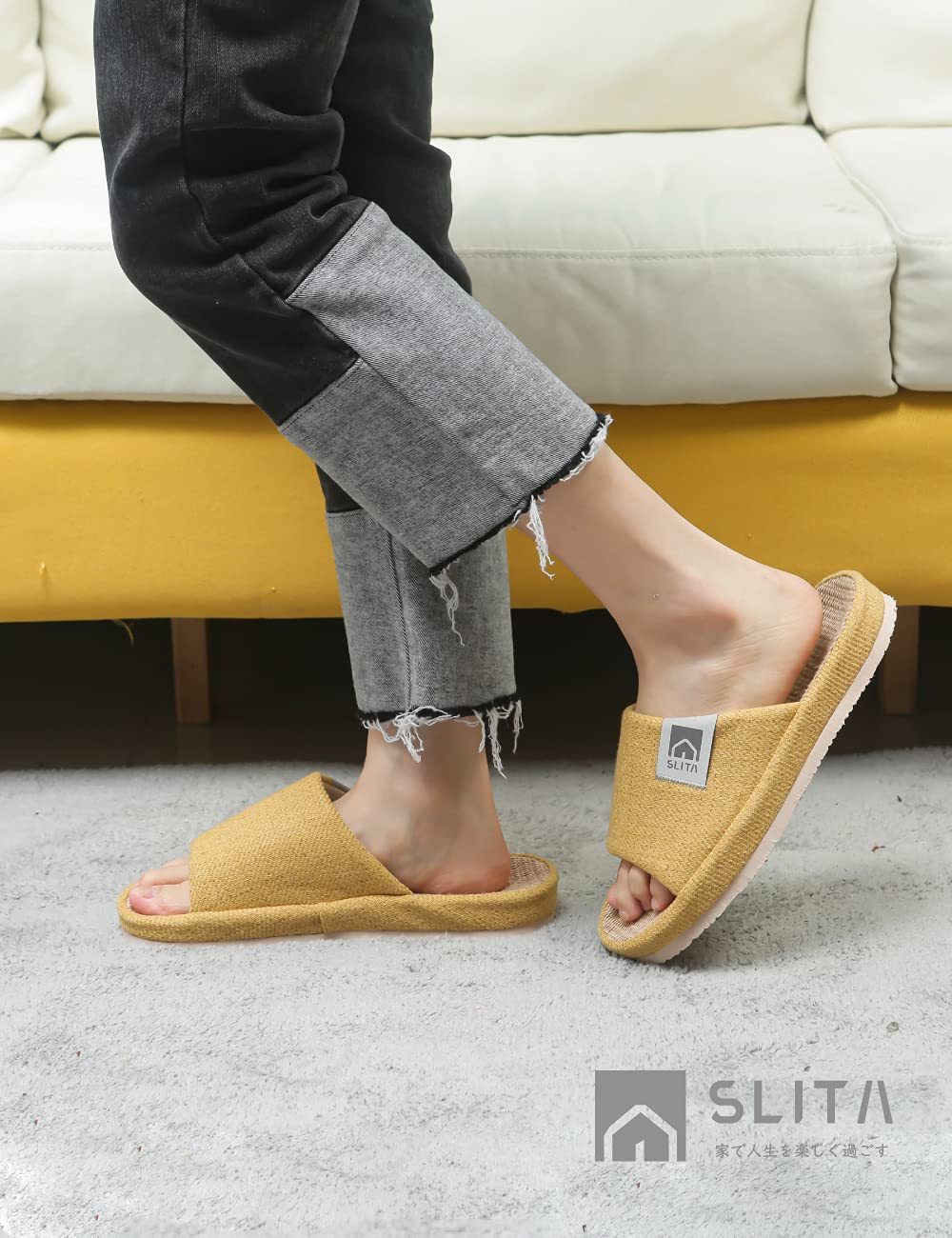 [SLITA] スリッパ 綿麻 ルームシューズ 前開き 室内スリッパ 来客用 男女兼用 洗濯可 軽量 静音 履きやすい 春夏秋冬 メンズ/レディース 滑り止め