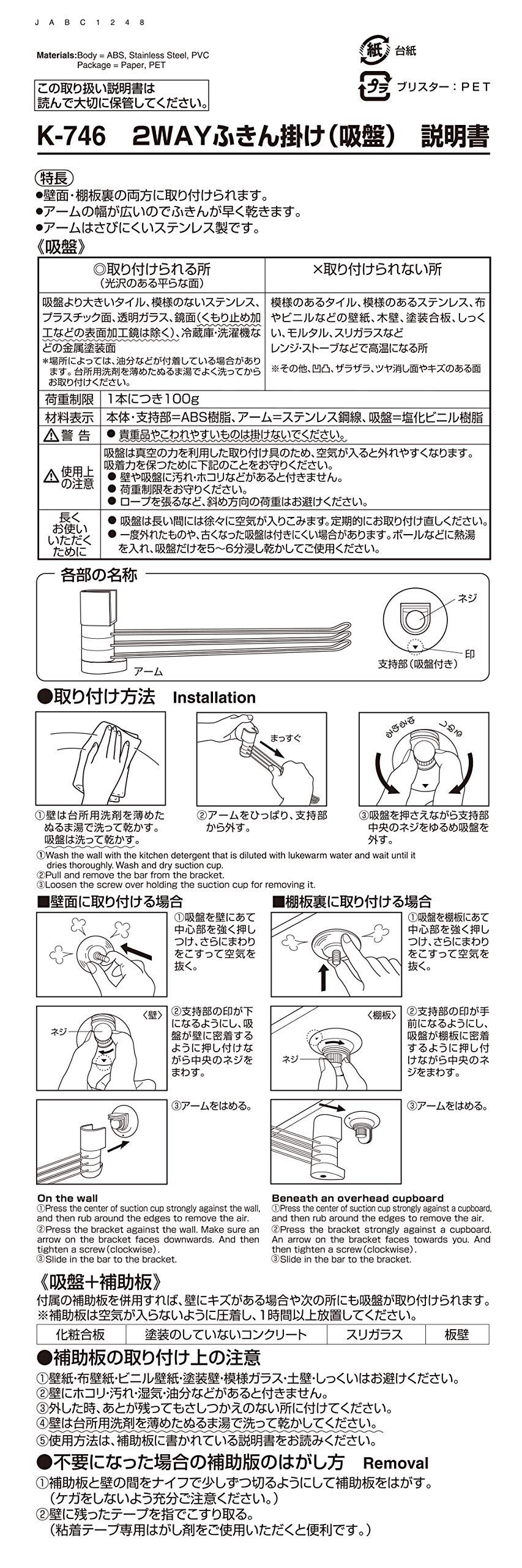 レック 2WAY ふきん掛け 吸盤 ホワイト K-746