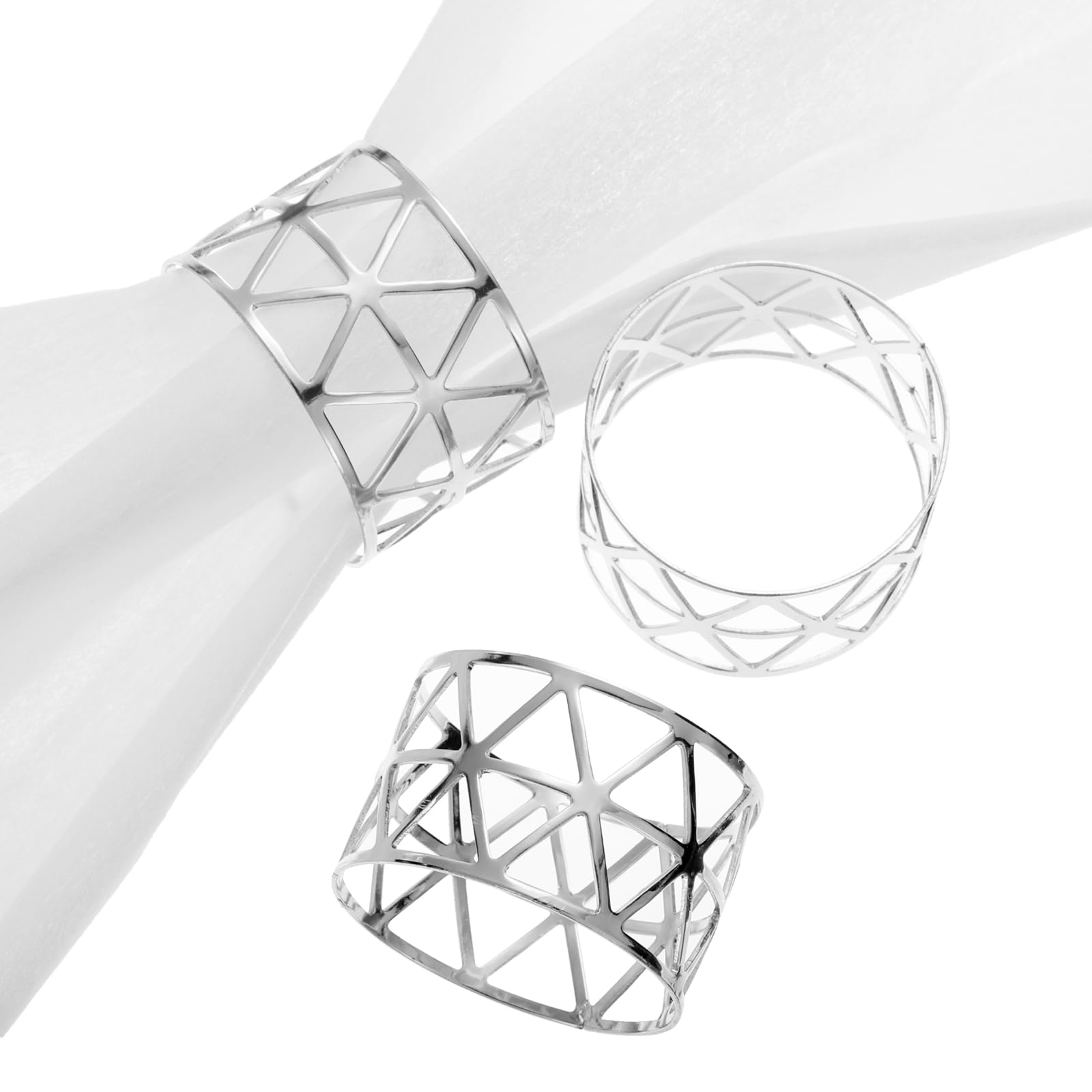 2. ナ プキンリングのバックルは三角形の形状デザインが特徴で、シンプルですっきりとした見た目です。それでも、ナ プキンバックルは多用途であり、テーブルセッティングを強化し、テーブルの装飾にモダンなタッチを加えるのに最適です。