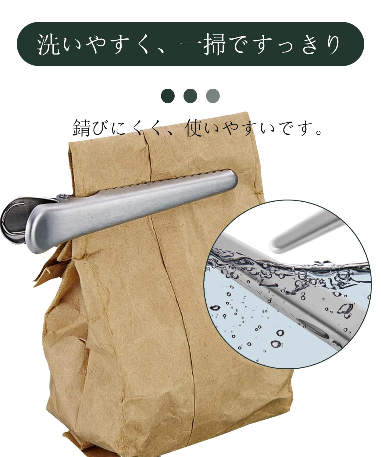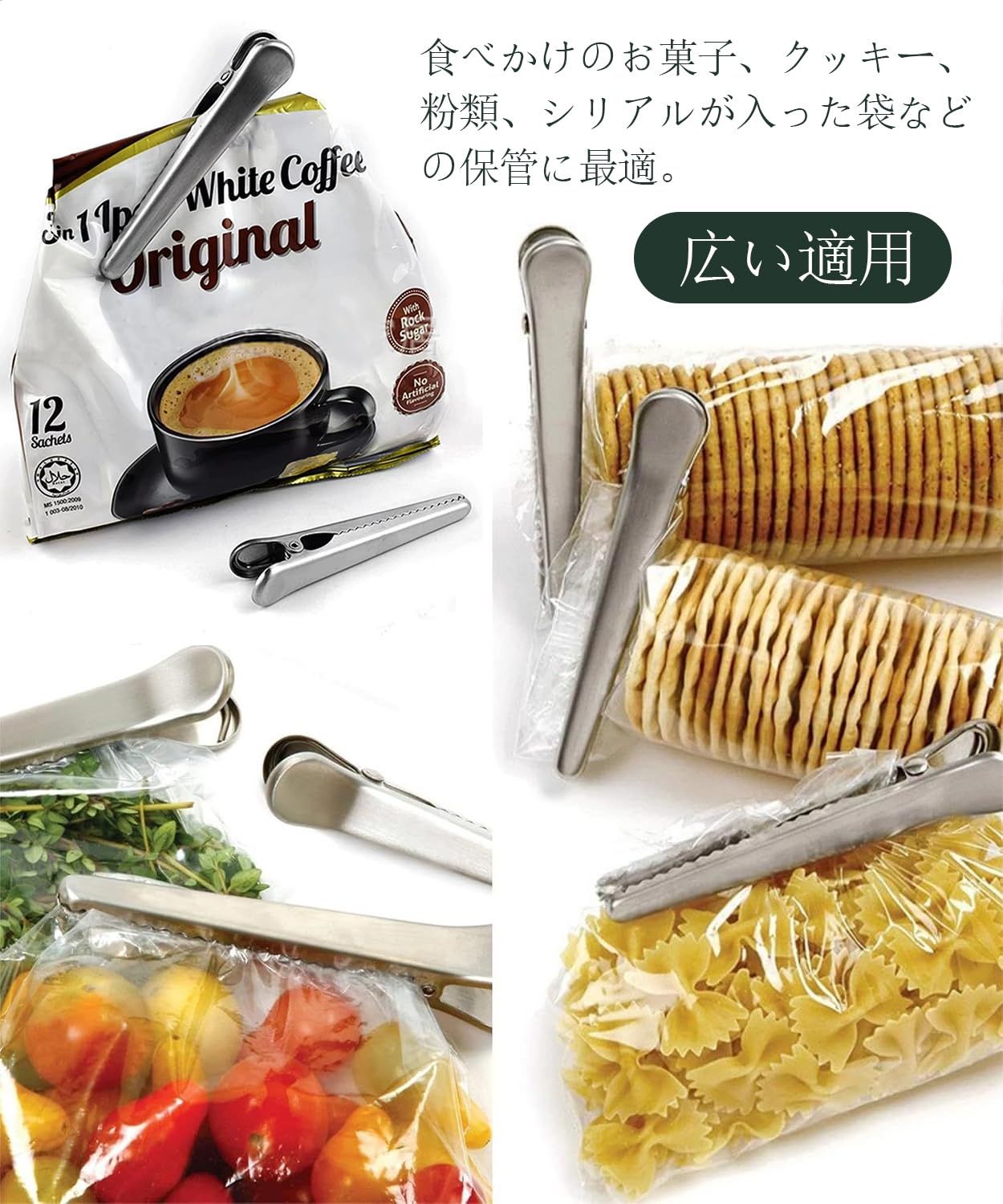Vitalux 袋止めクリップ ステンレス製 強力キッチンクリップ 6個入 食品保存用 密閉容器 湿気防止 酸化防止 鮮度保持 防塵 キッチン小物