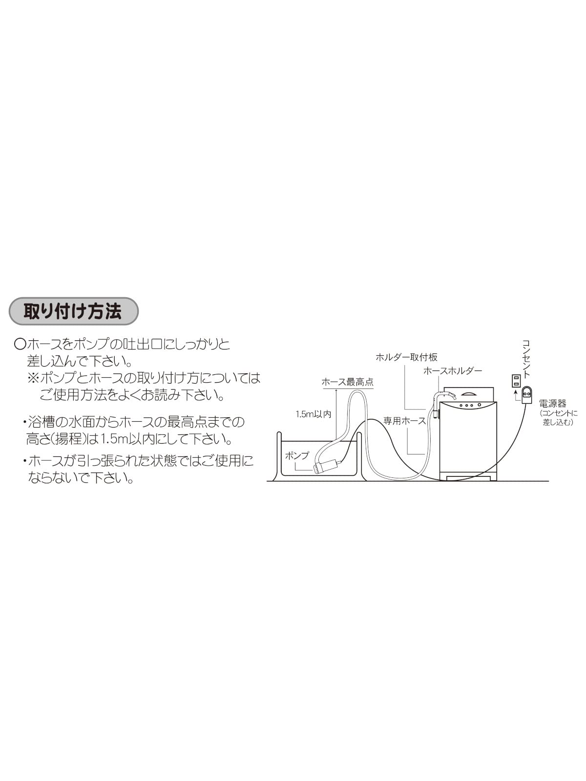 ●浴槽の水面からホースの最高点までの高さ(揚程)は1.5m以内にして下さい。