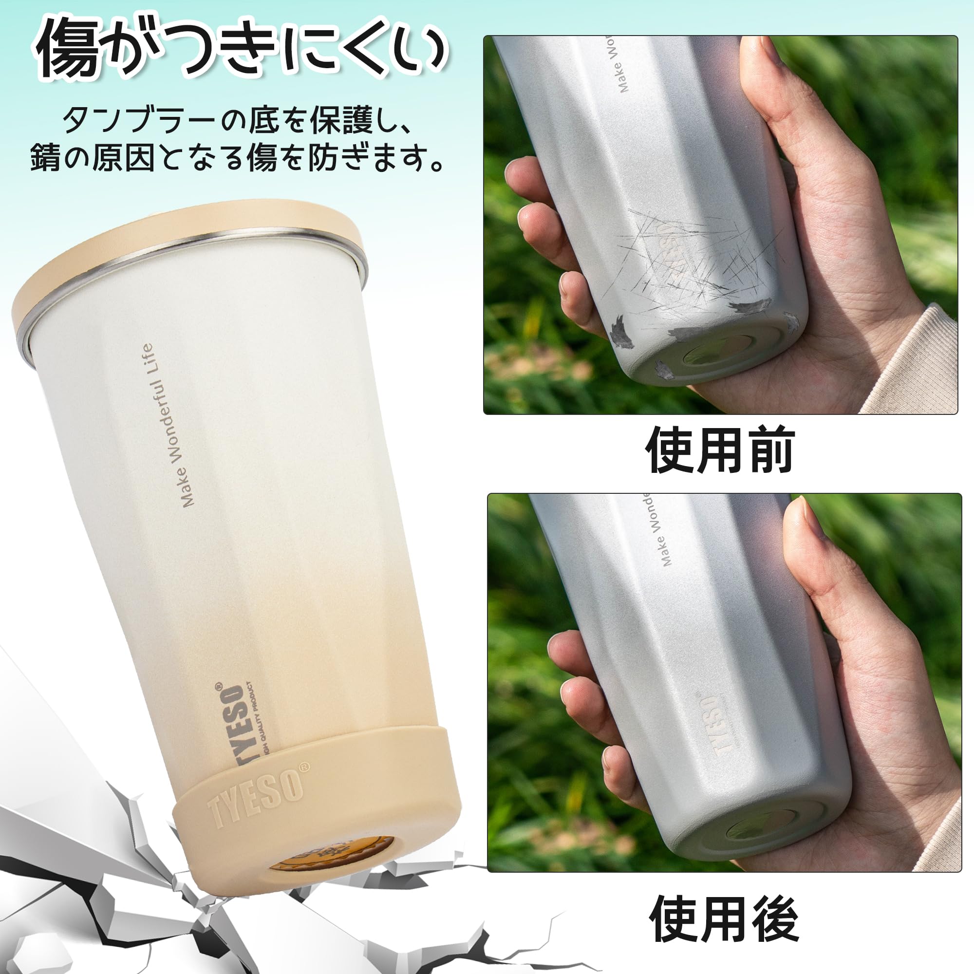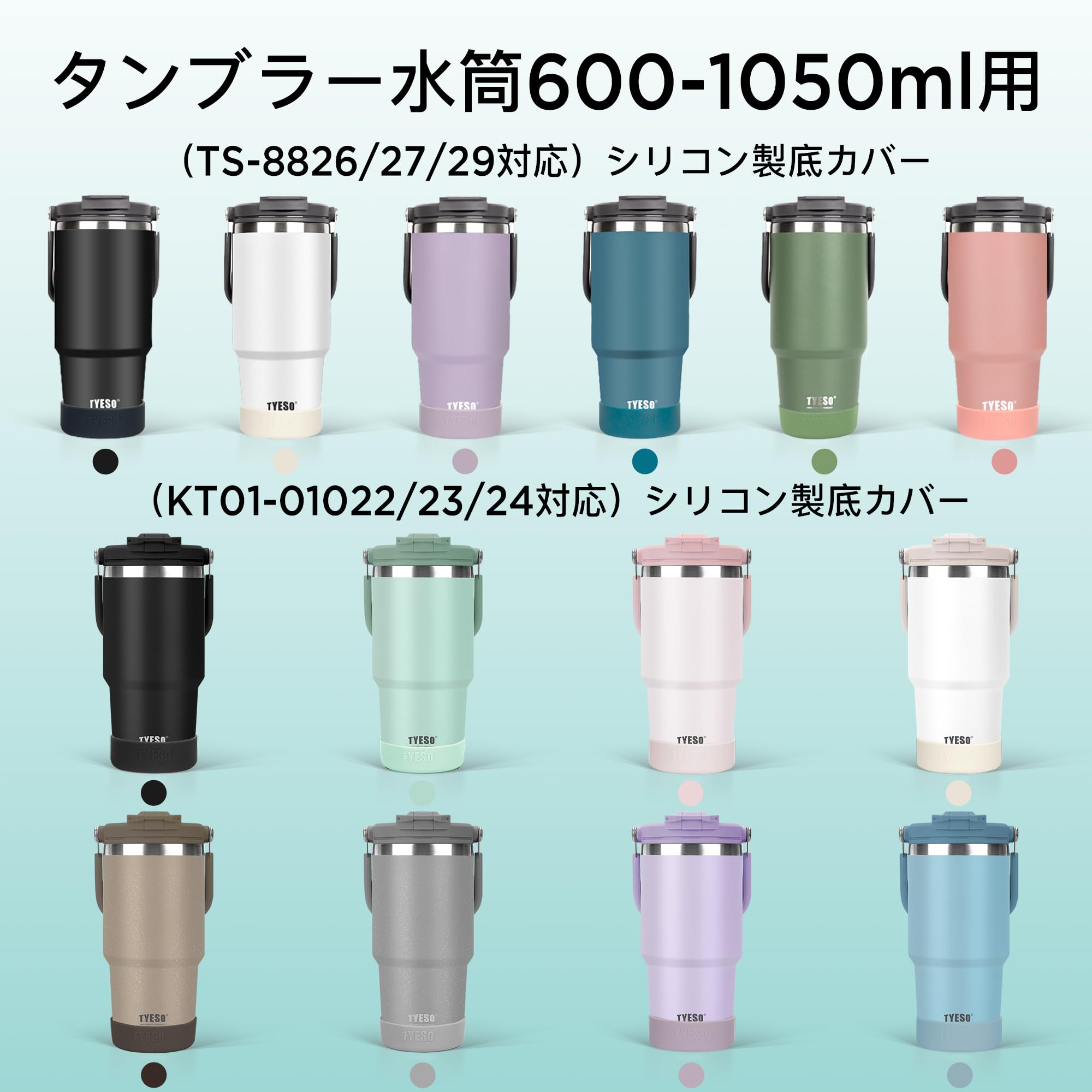 TYESO ウォーターボトルカバー シリコン製 水筒 タンブラー 底カバー 真空断熱 水筒カバー 対応 保護カバー 底抜け対策 滑りにくい 騒音や傷がつきにくい