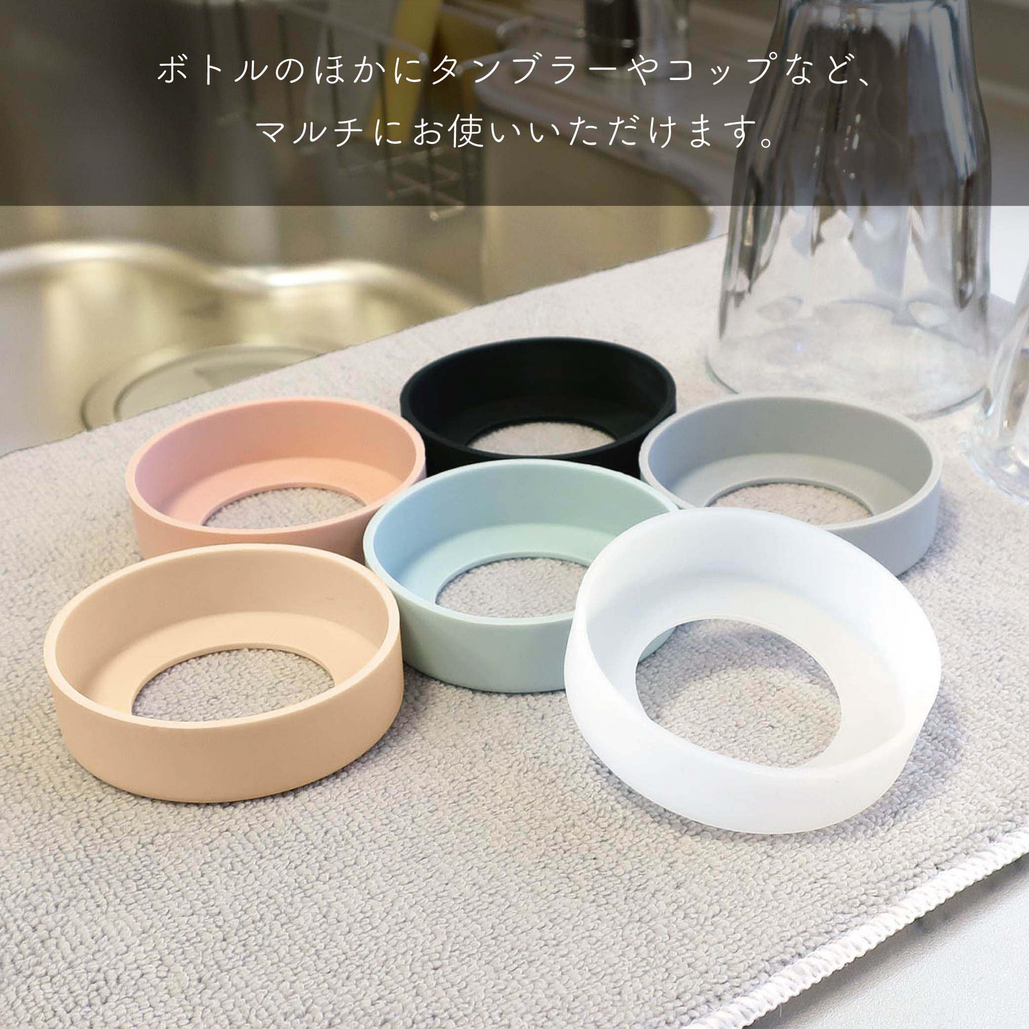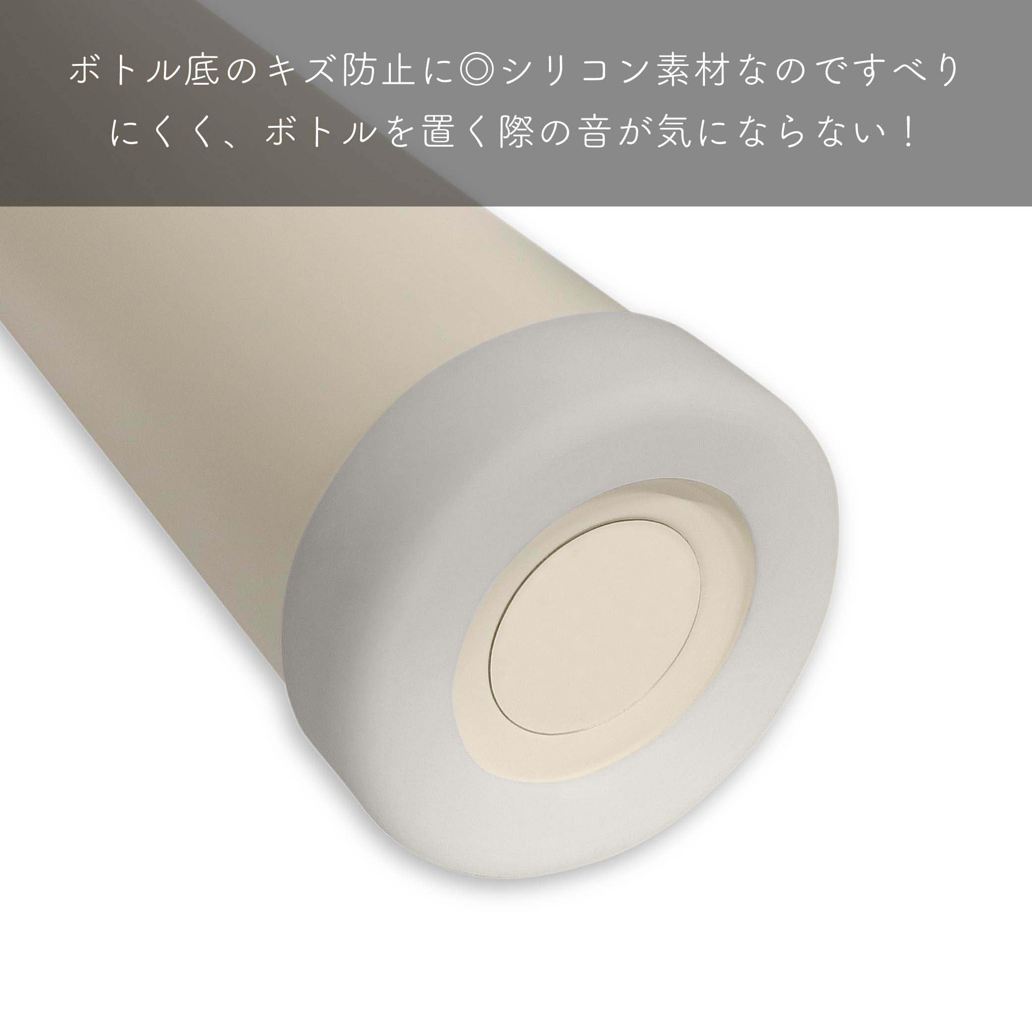 シリコン素材を使用しているので滑りにくく、ボトルを置く際の音軽減にも役立つ底カバーです。