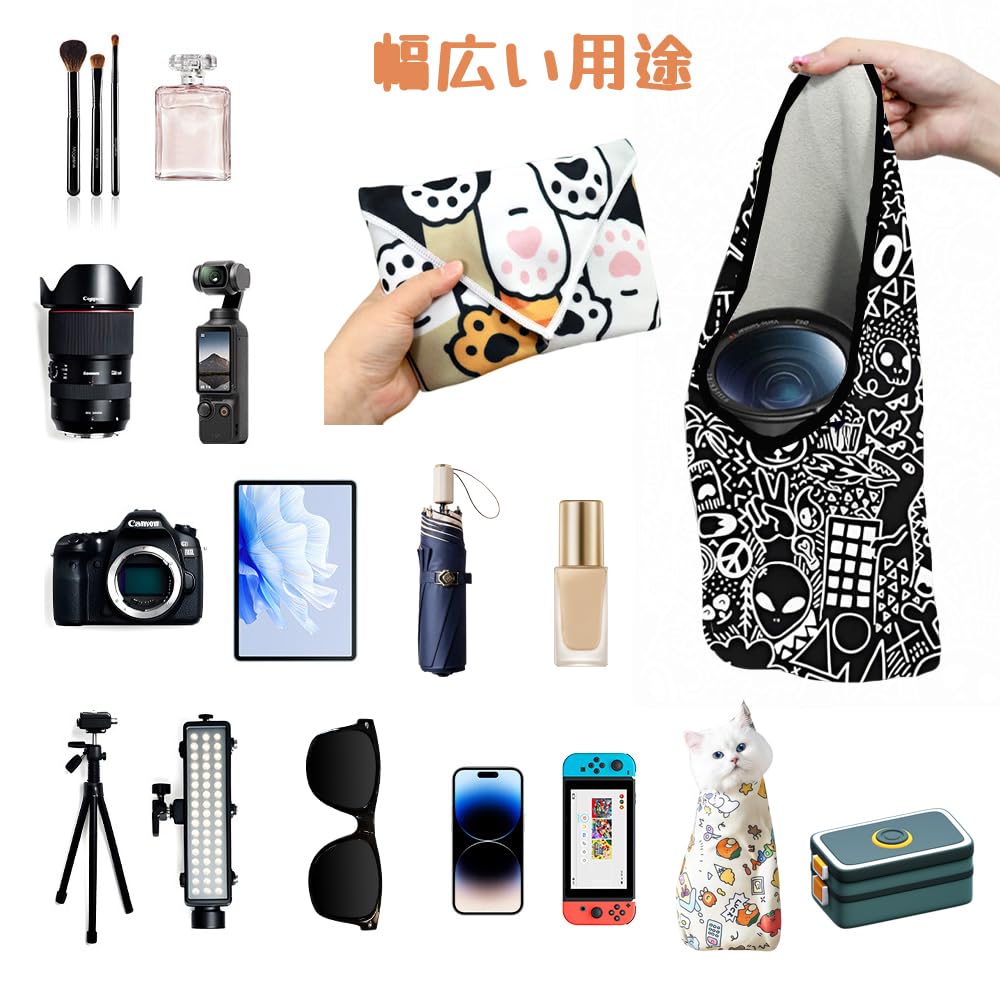 【何でも包めて守る万能選手】多機能くっつくクロスは、お弁当・ペットボトルはもちろん、デリケートなカメラ、タブレット、13インチノートPC、傘まで幅広く対応。衝撃や擦れから大切な日用アイテムをしっかりガードします。