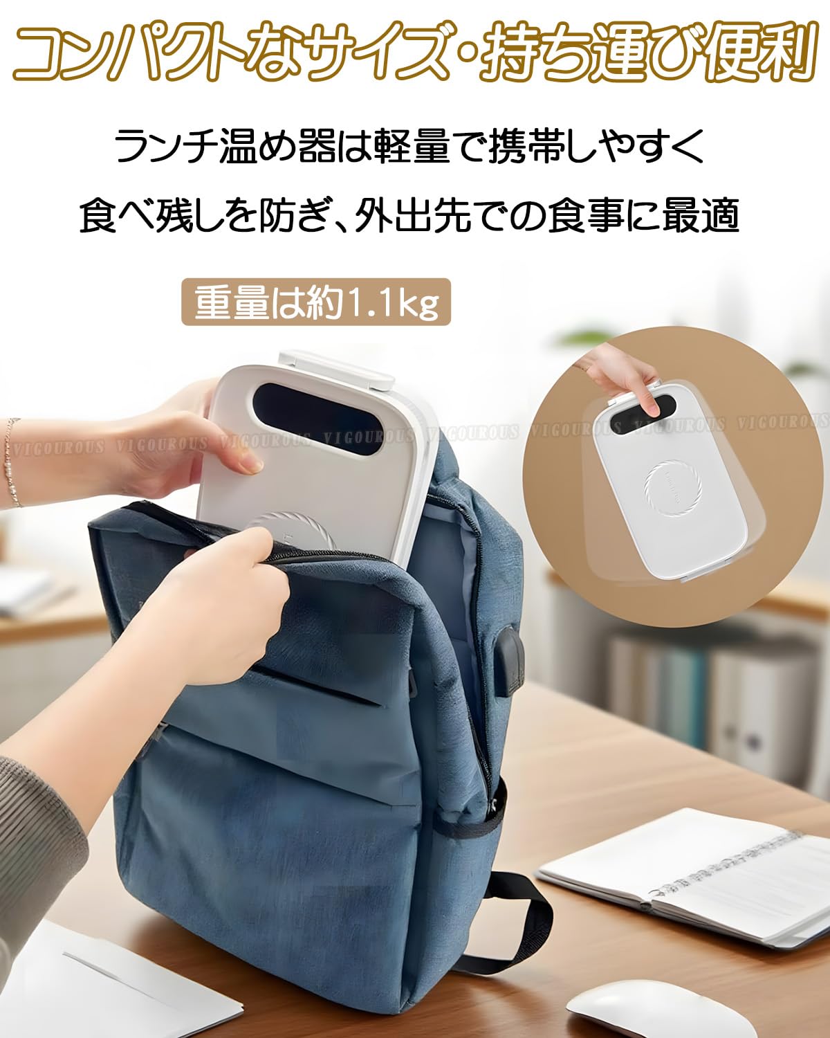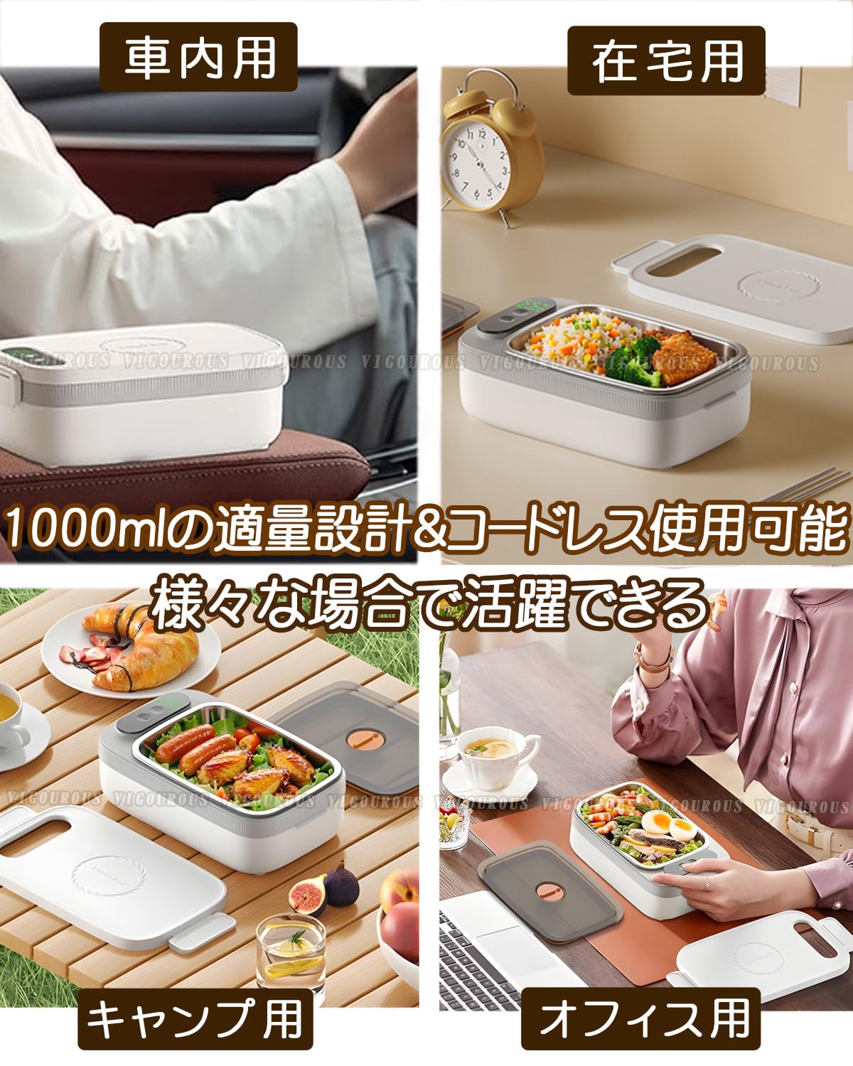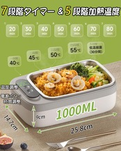 【1000mlの適量設計でニーズに応える】: 1000mlの容量は、一人前の食事量にぴったり合うように設計されています。ご飯とおかず、パスタとスープ、サンドイッチなど、様々な料理を簡単に収納可能。 ランチ温め器は軽量で携帯しやすく、食べ残しを防ぎ、外出先での食事に最適です。