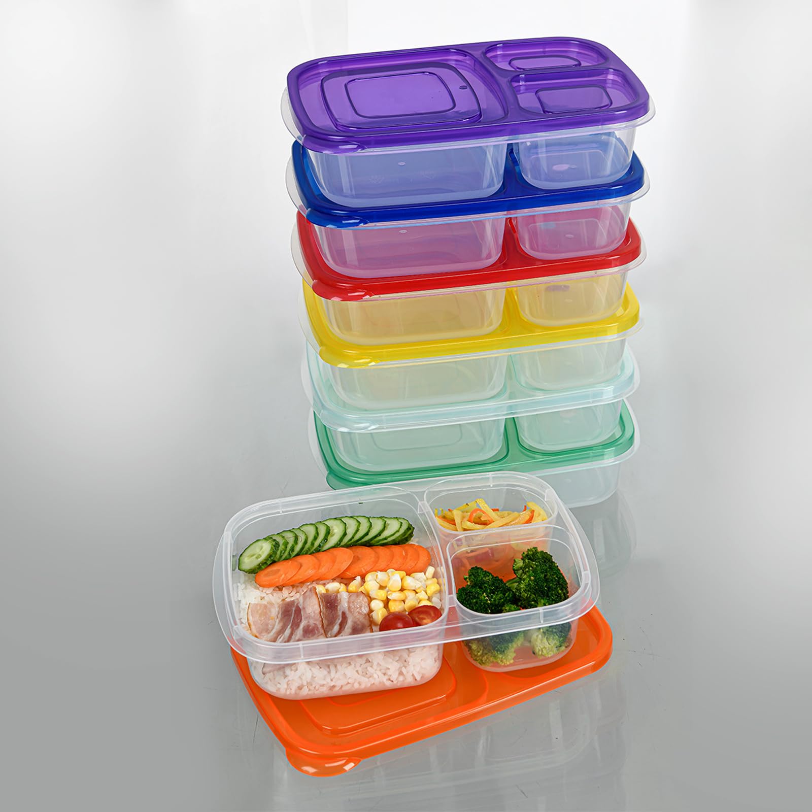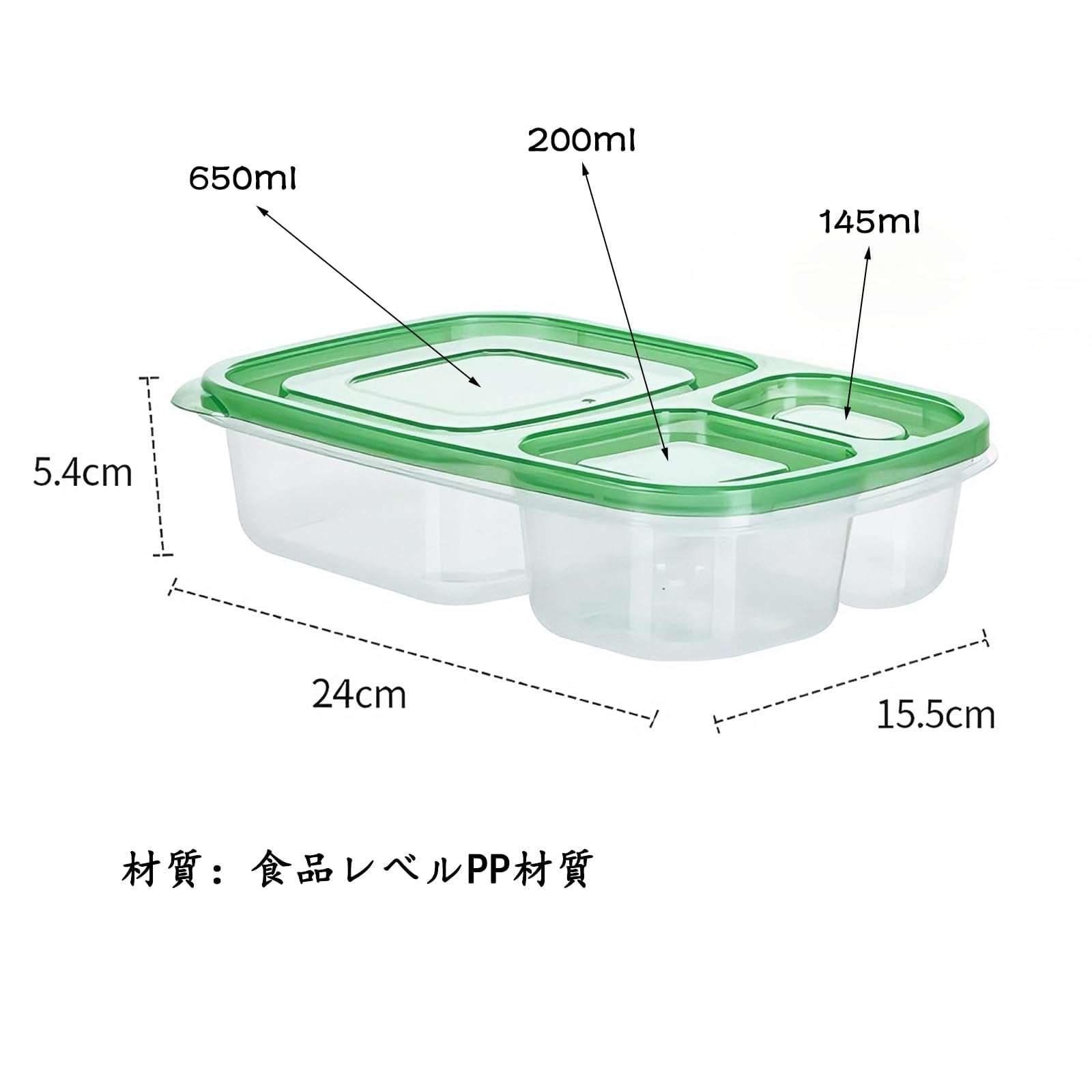 セット内容:7個の食品保存容器セット、サイズ: 24×15.5×5.4cm,3つの区画付き、整理に便利な弁当箱です