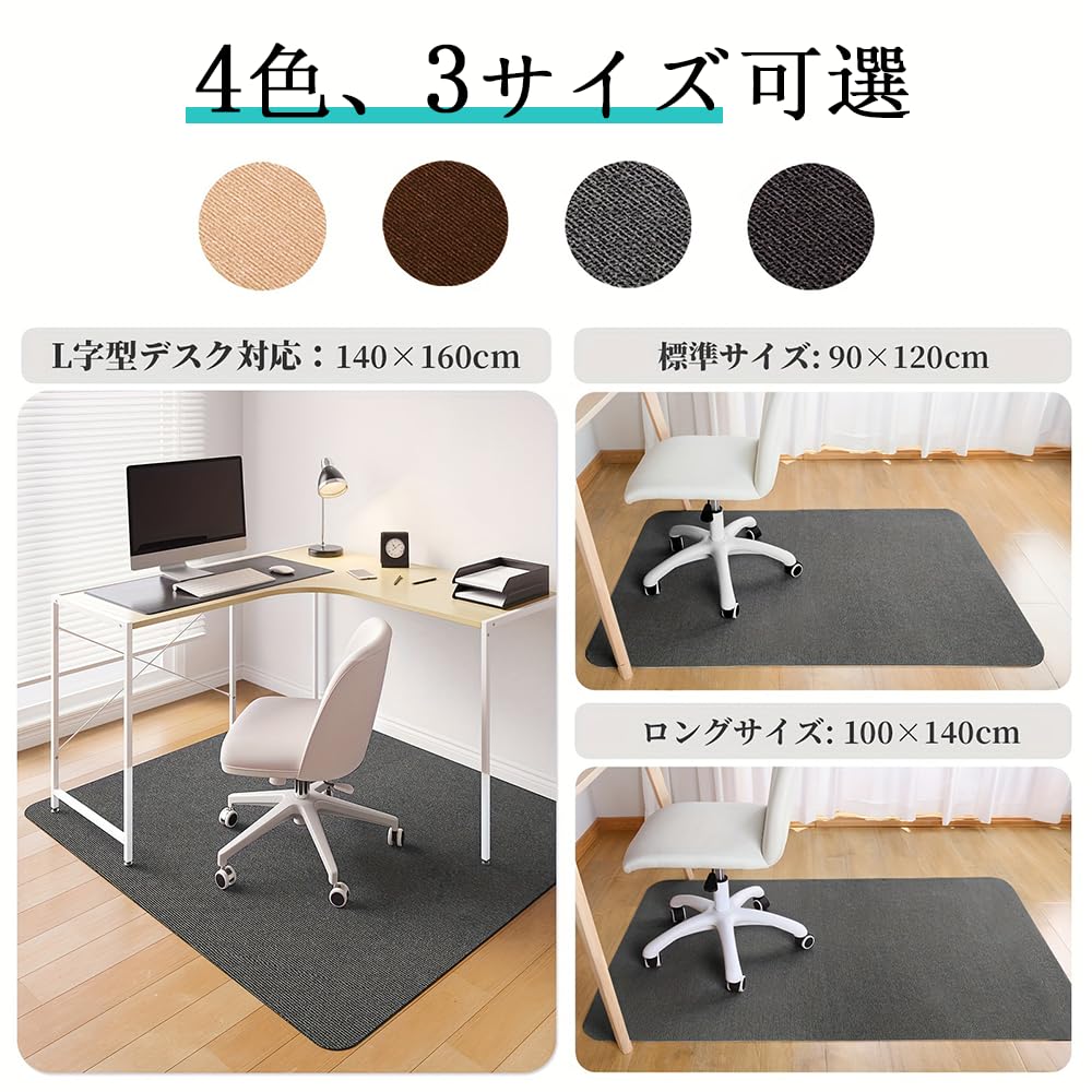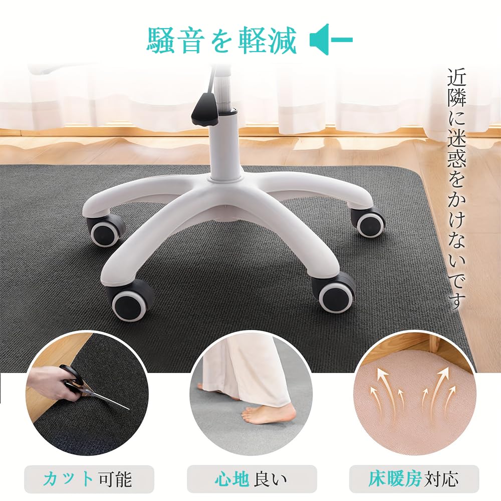 【環境にやさしい素材で床暖房に適しています】サイズ:90×120cm/100×140cm/140×160cm(厚み4mm)。表面:ポリエステル、裏面:アクリル樹脂(カテキン入り)。裏面に優れた性質を持つアクリア樹脂で加工されたので、温度適応力は-40℃からプラス80℃まで耐えられる、床暖房を使っても大丈夫な耐熱性。BCRIOのチェアクッションは安全性の高い素材を使用 床のキズ防止 家具保護パッド。鉛やフタル酸エステル類は含まれていません。セルフ粘着 床のキズ防止お子様からお年寄りまで安心して使用できます