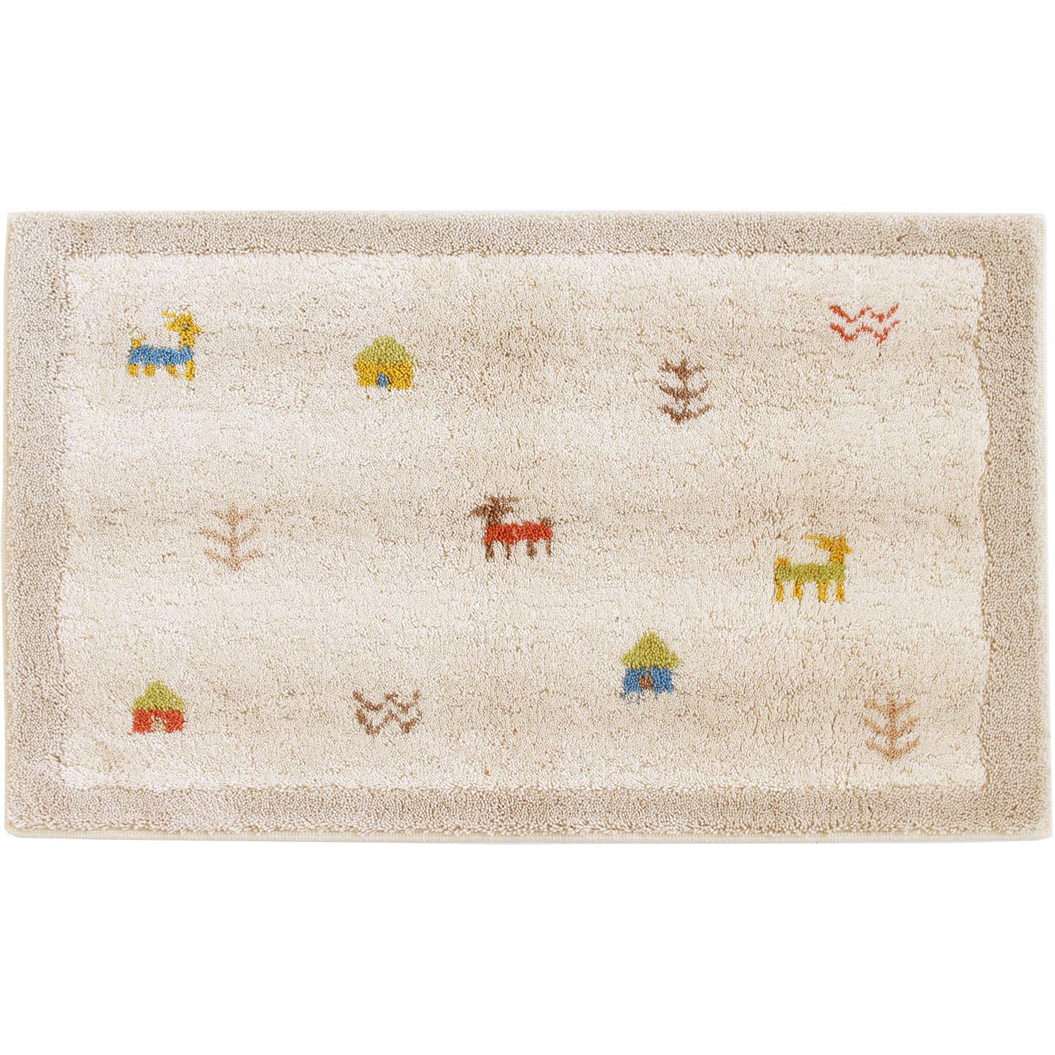 オカ(OKA) ギャベ コーナー吸着玄関マット 約45cm×75cm ベージュ (ギャベ柄 エスニック 洗える 吸着 ラグ カーペット 日本製 大判)