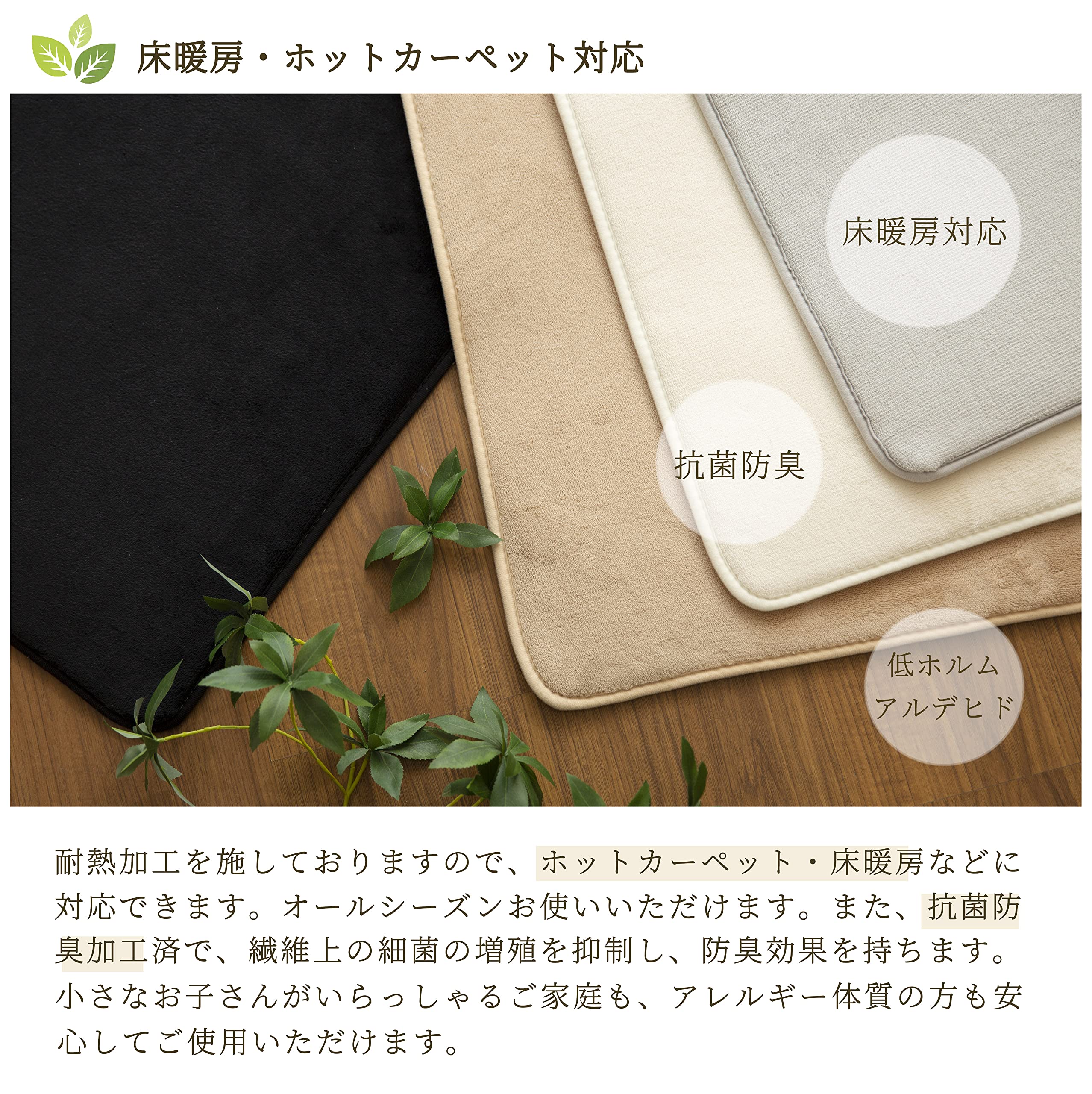 【床暖房対応】耐熱加工を施しておりますので、ホットカーペットや床暖房との併用もでき、節電対策にもおすすめです。
