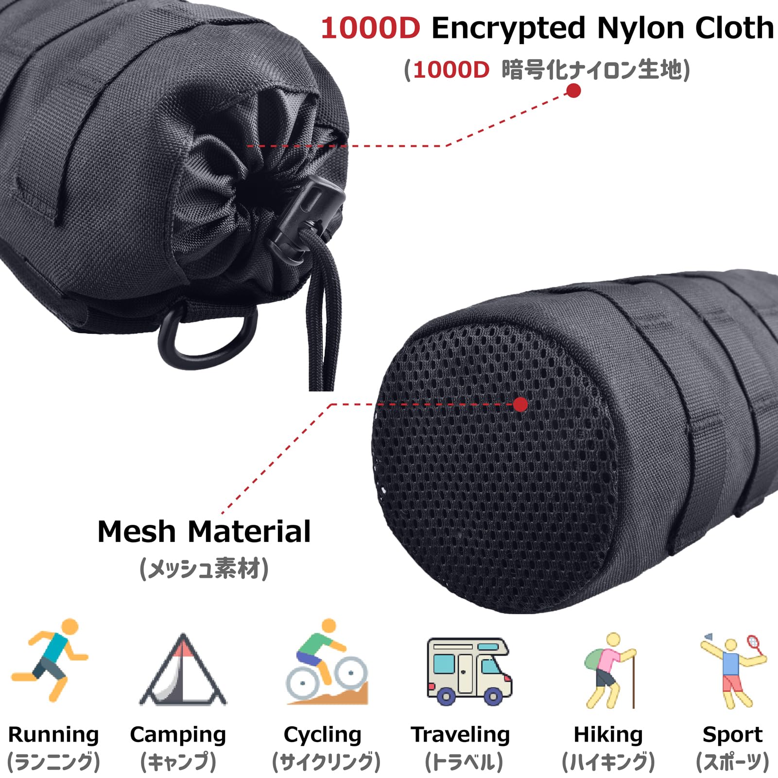 【特価】Azarxis 水筒ポーチ ナイロンボトルケース MOLLEシステム モール対応 タクティカル EDC ハンディポーチ ペットボトルホルダー 登山、キャンプ、探検、バイク、サバゲ—、アウトドア用 | GIGATERA