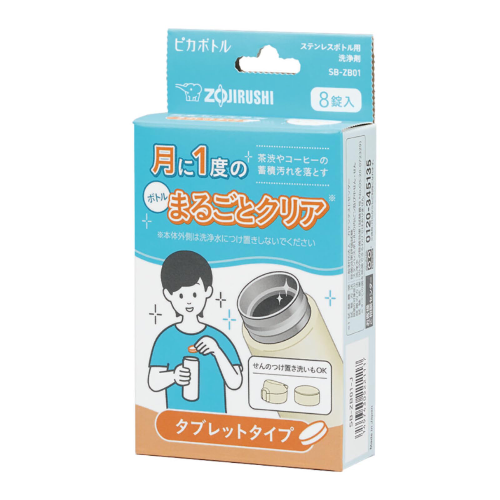 象印マホービン ボトル洗浄剤 お手入れ ピカボトルシリーズ タブレットタイプ ステンレスボトル用洗浄剤 8錠入り SB-ZB01-J