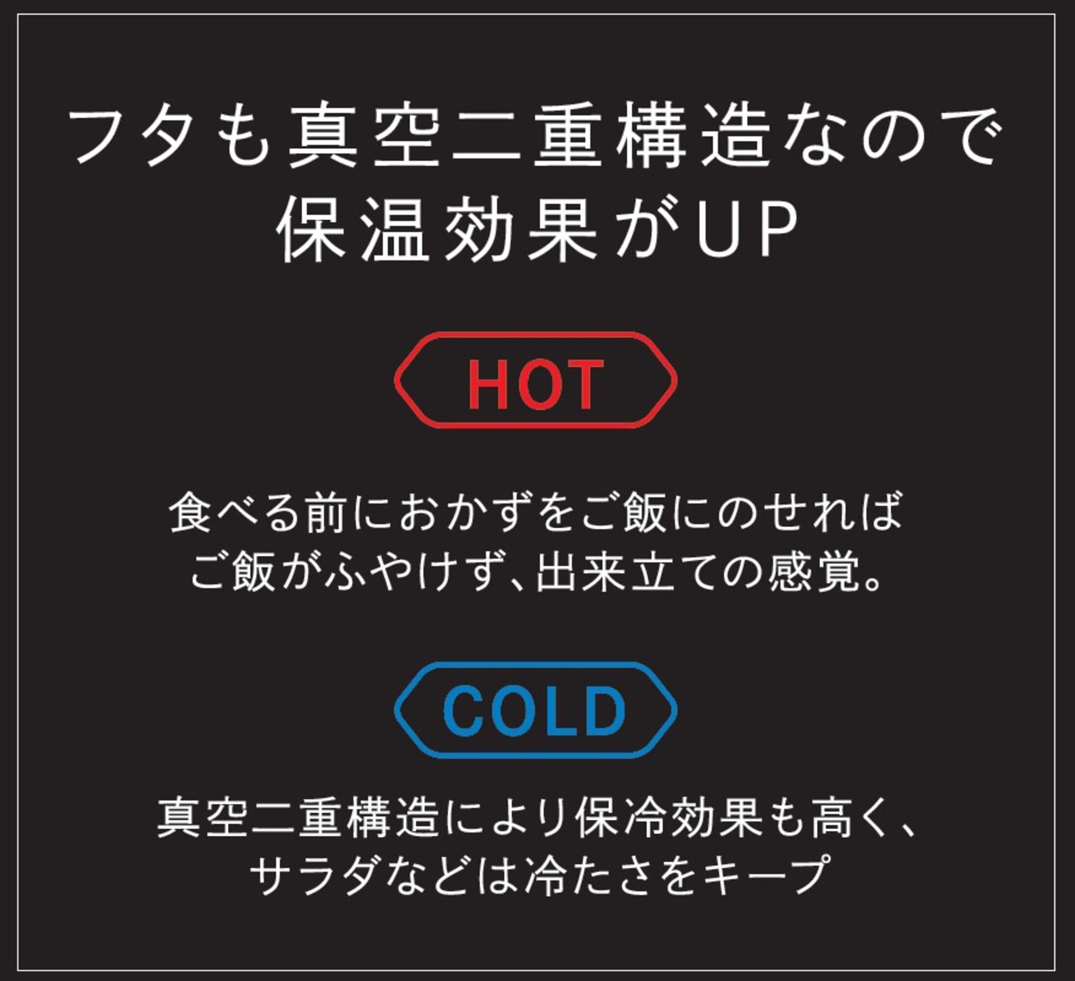蓋も真空二重構造で保温力がアップ。ごはん容器(430ml)・おかず容器(300ml)×各1