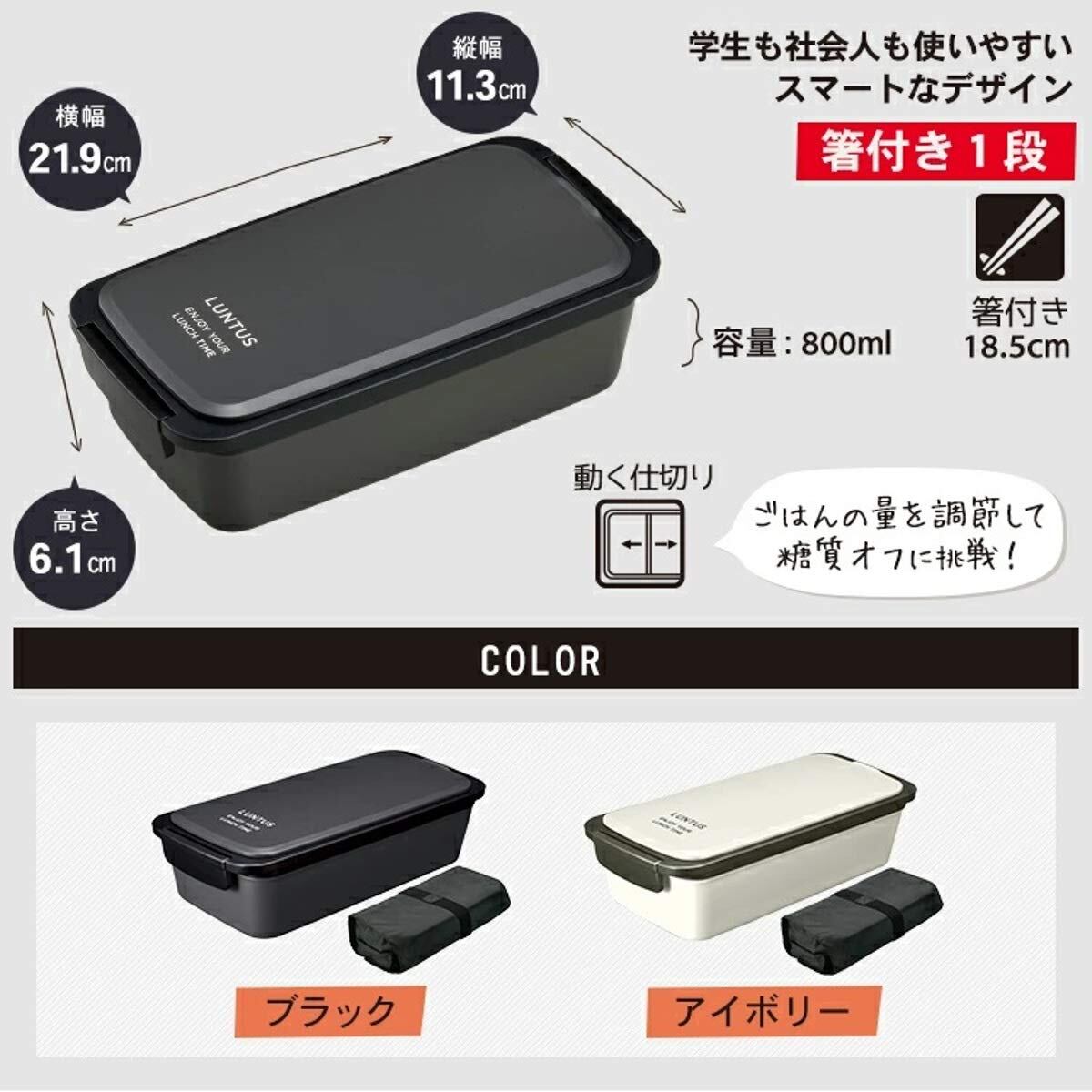 スタイリッシュでスマートな弁当箱。フタの内側に箸が収納でき、生活感を出しません。