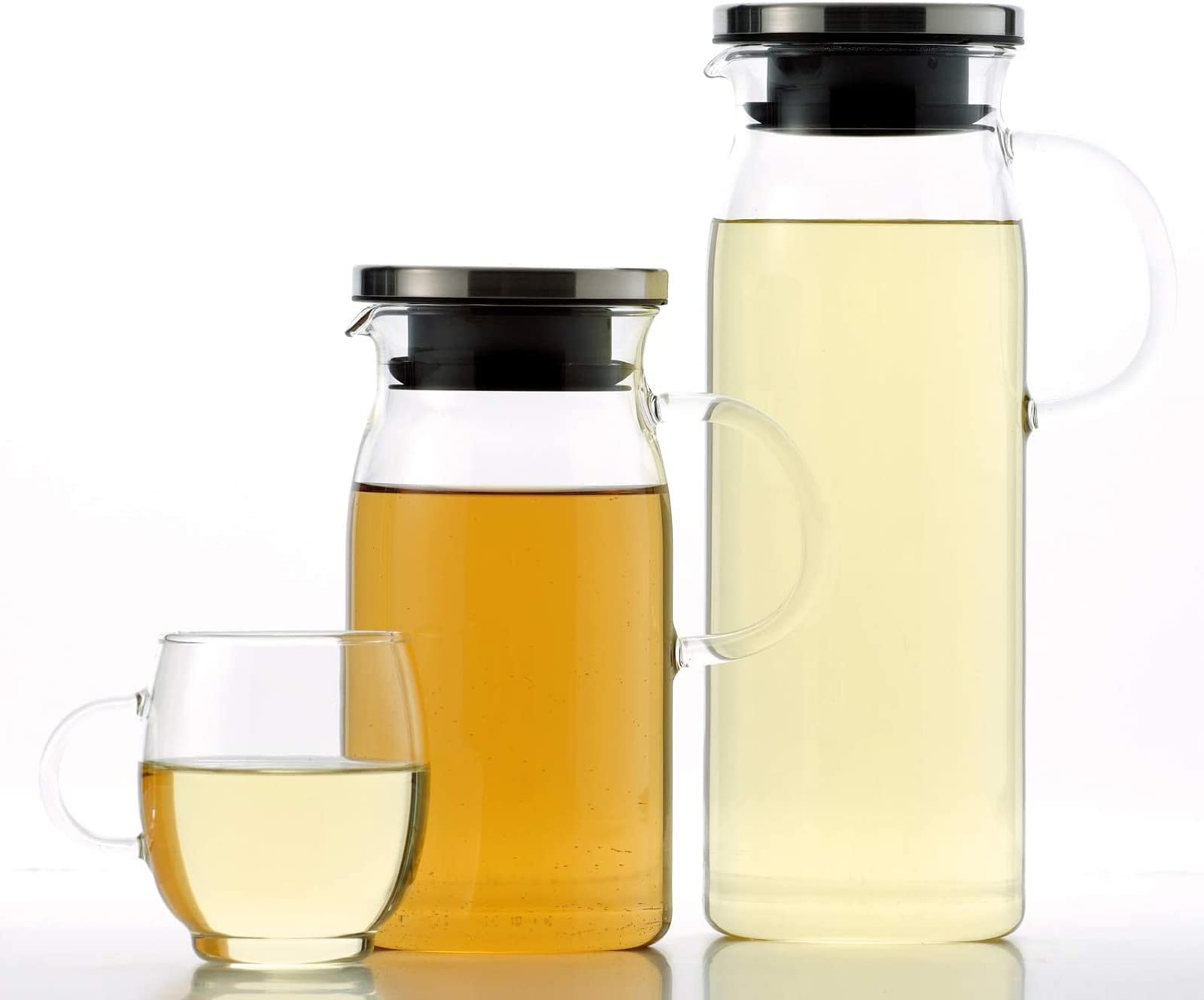 iwaki(イワキ) AGCテクノグラス 耐熱ガラス 麦茶ポット ピッチャー 1リットル 丸型 冷水ポット 冷水筒 ジャグ KT294-SV