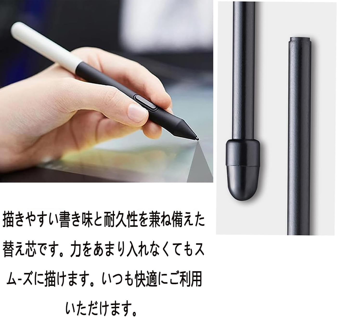 書き心地-繊細で滑らか:芯の先端が滑らかで丈夫な設計で、力を入れすぎてもスムーズな描画体験を保つことができます。オリジナルの芯と同様に、繊細なタッチと正確な線のコントロールを提供し、キャンバス上を自由に流れるようにします。