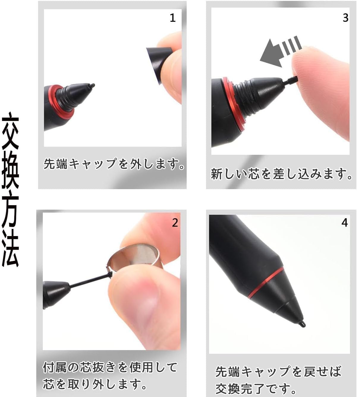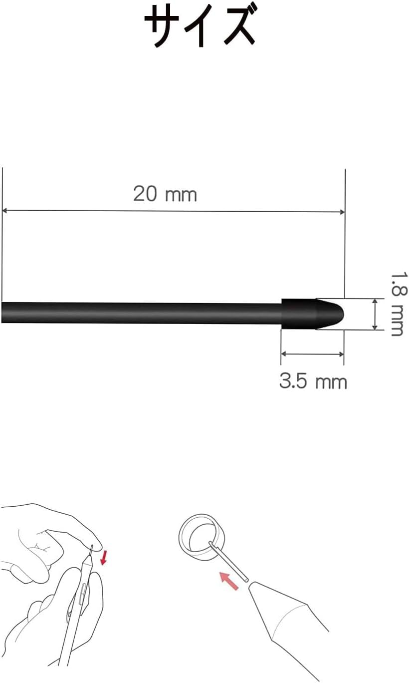 簡単な交換-簡単で便利:芯の交換はこれほど簡単ではありません1.古い芯をペンから取り出します。2.新しい交換コアの先端をペン軸に合わせ、垂直に挿入します。3.完全に固定されるまで軽く押します。ツールは必要ありません。誰でも簡単に交換ができ、創作を中断することができます。
