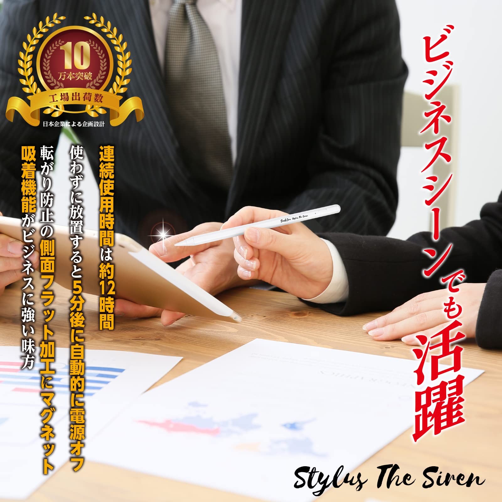 【充電方式及びマグネット吸着機能】USB充電式で連続使用時間は約12時間。 使わずに放置した状態だと5分後に自動的に電源オフ。 電源は静電感知式で、ペンの上部に触れることでON OFF切替可能。またちょっとした休憩時にタッチペンが転がらないよう、マグネット吸着機能と一部側面フラット加工付き。(マグネット吸着で充電は出来ません) 別途、交換用ペン先3セットあり→Asin B0983YHB3C