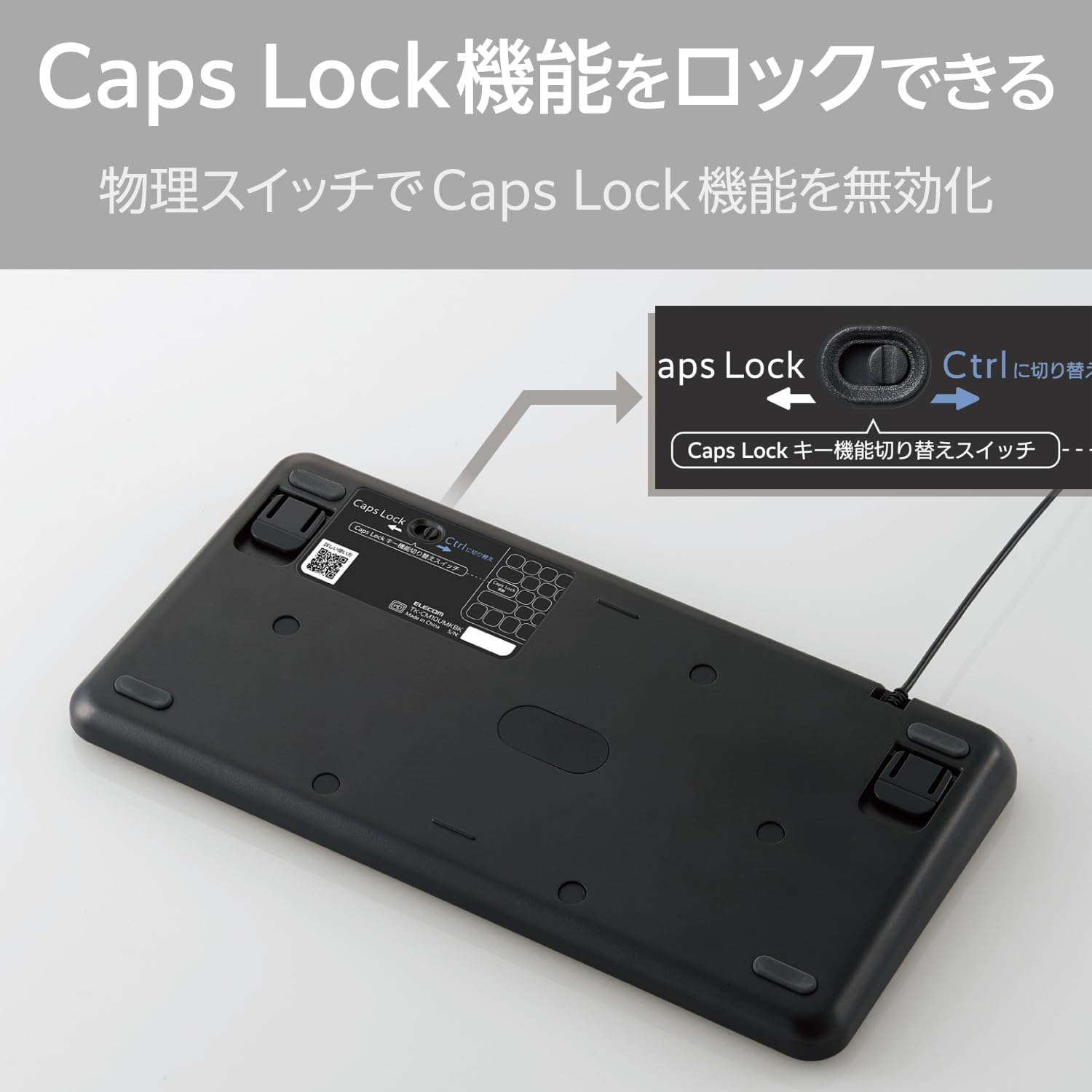 ■気づかないうちに押してしまいやすいCaps Lock機能をロックできる、“Caps Lock機能無効化スイッチ”を搭載しています。