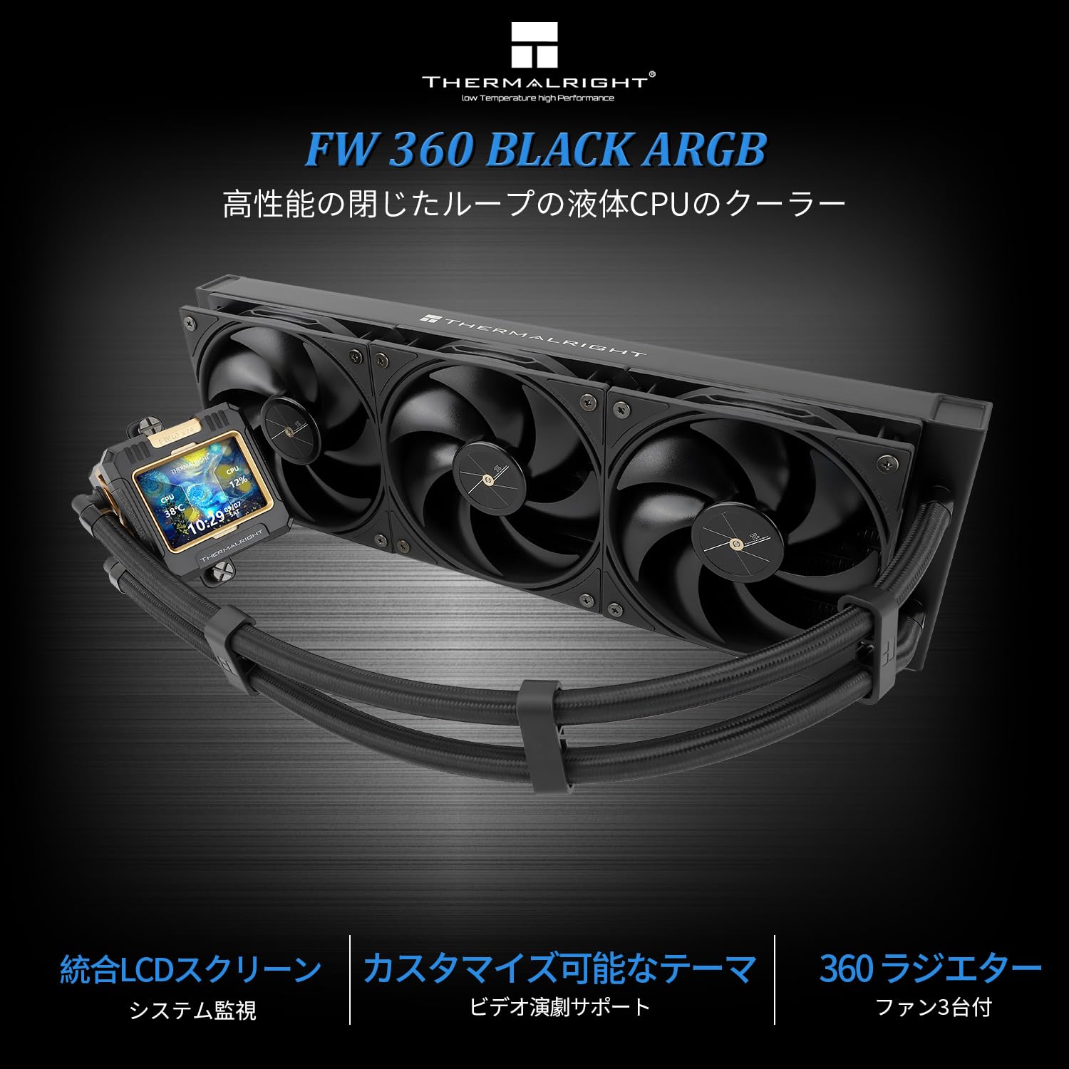 【数量限】Thermalright FW 360ブラックCPU AIOクーラー、PC 360仕様ウォータークーラーシステム、320 * 240解像度のIPS液晶画面、AM5&Intel LGA1700 / 17XX用、高性能ポンプ | GIGATERA