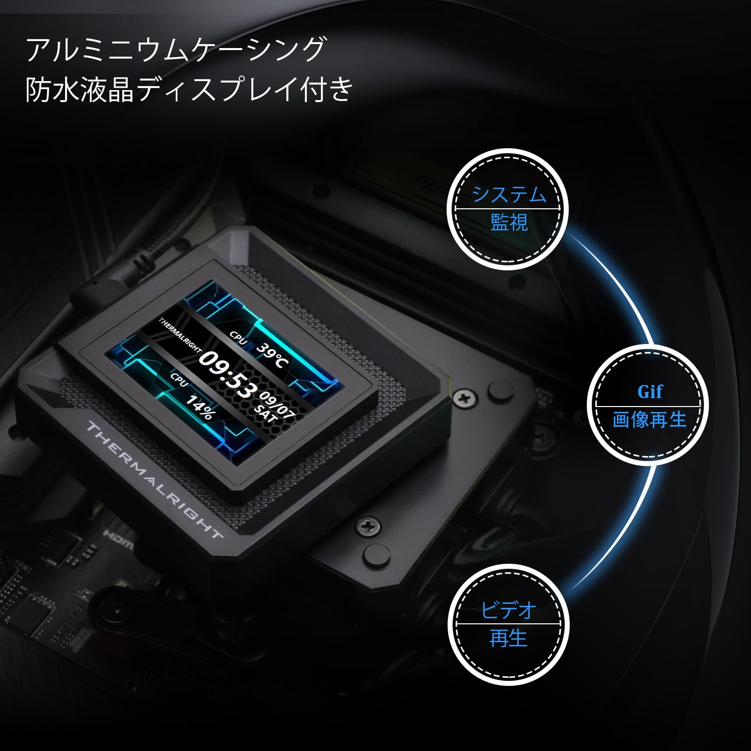 [2インチIPSスクリーン] 2インチの正方形IPS LCDスクリーンは、円形スクリーンと比較して視認性が高く、IPSパネルスクリーンは色を正確に復元し、JPG、PNG、GIFなどの画像表示をサポートし、希望する画像を自由にカスタマイズできるだけでなく、いつでもCPUの温度を監視できます。水冷ヘッドは、自由に操作できるLCDディスプレイを備えた磁気モジュールです。