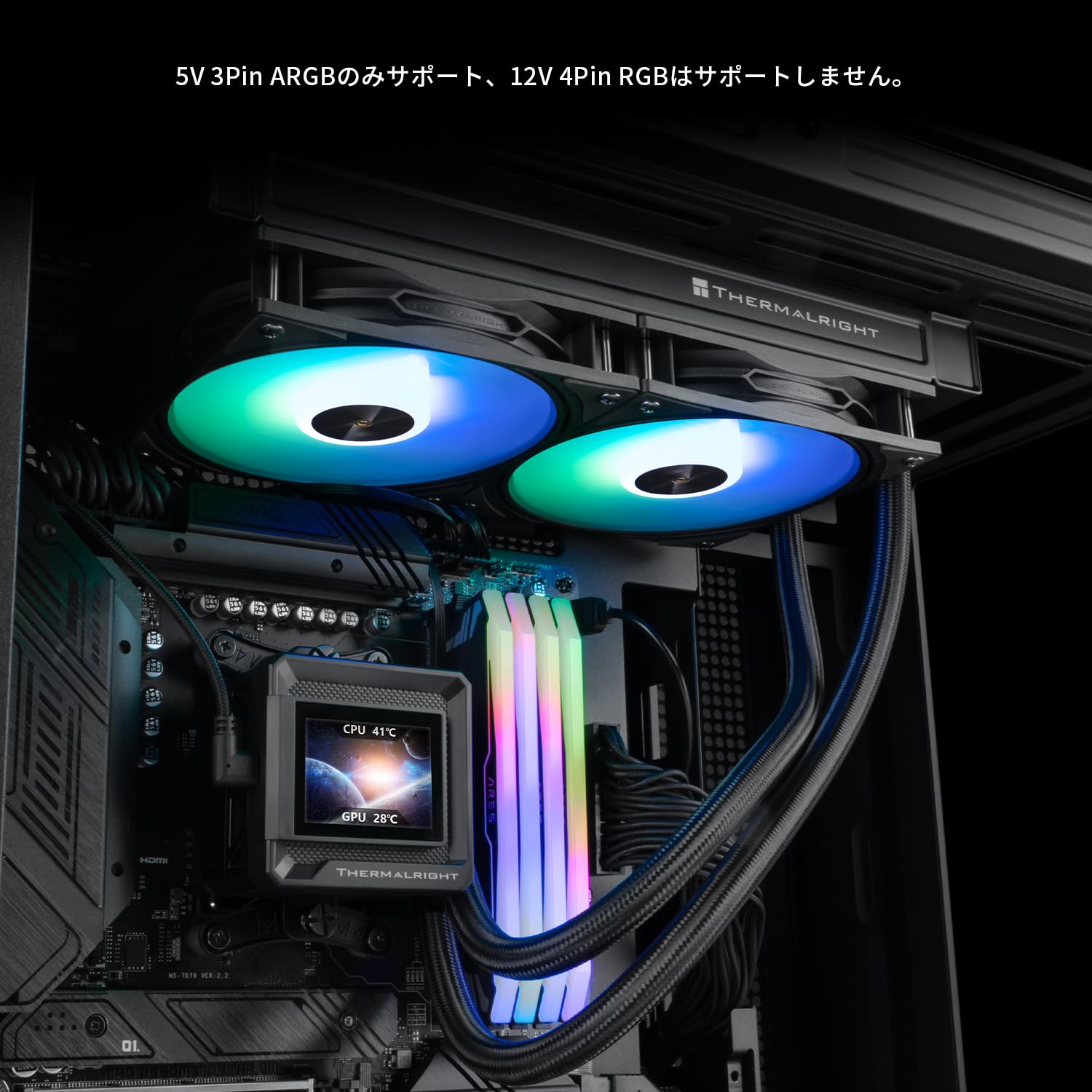[ARGB神聖な光の同期] CPUファンのARGBはマザーボード上の5V 3ピンと同期され、光の同期、色の柔らかい光の効果、豊かな照明効果を提供しながら効率的な冷却を実現し、ライトスロットの不足を避けるために直列のライト効果をサポートします。ライトコネクタは5V 3PIN ARGBです。マザーボードにこのコネクタがあることを確認してください。