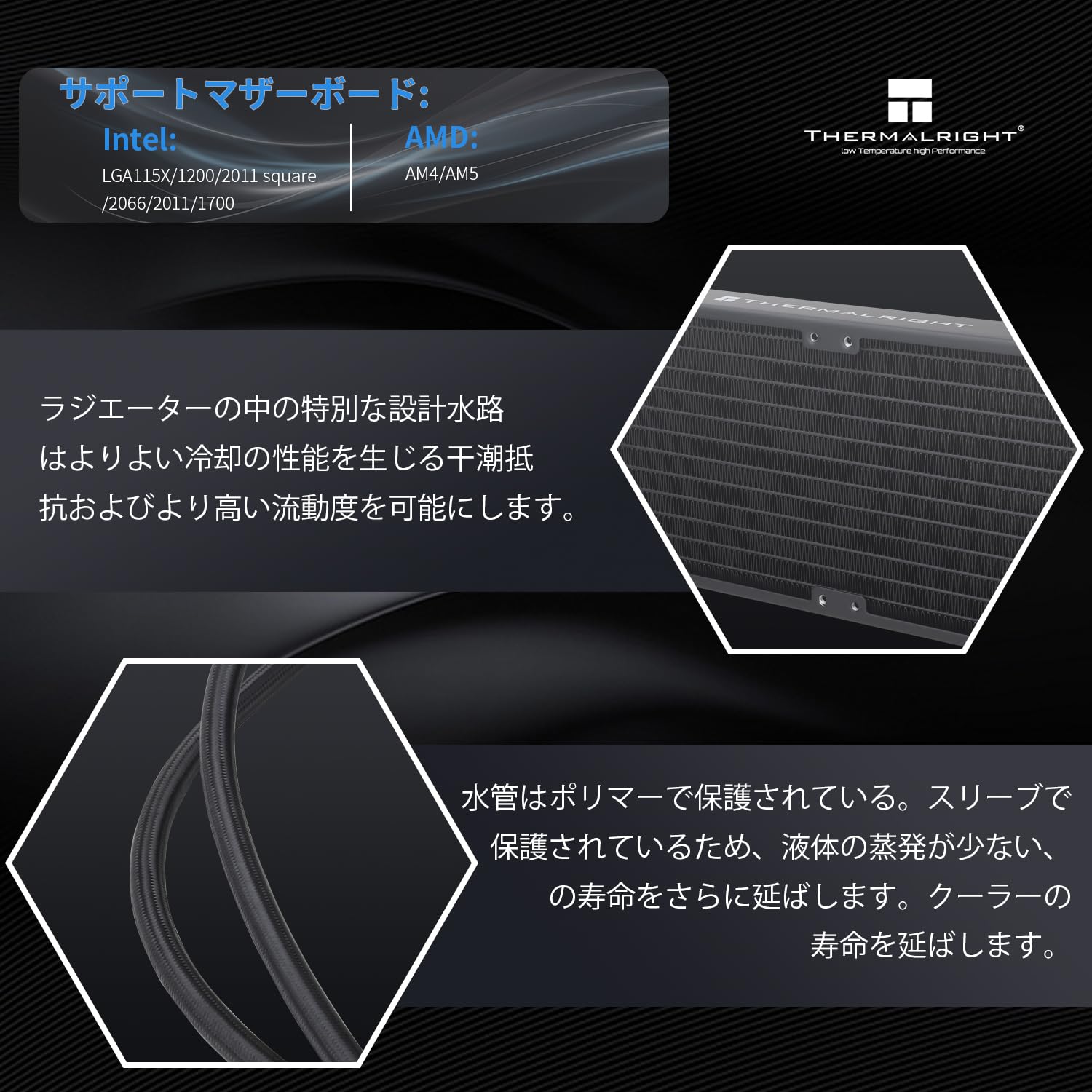 【高性能クーラーヘッド】オールメタルクーラーヘッドを備えた第4世代のポンプボディフレームは、低熱抵抗、ポンプ本体周りのARGBハロー、最大40,000時間のウォータークーラーヘッド寿命、最大3300RPM ±10%の速度を備えた優れた熱伝導率技術を備えており、低振動で動作するだけでなく、長く優れたCPU冷却をします。