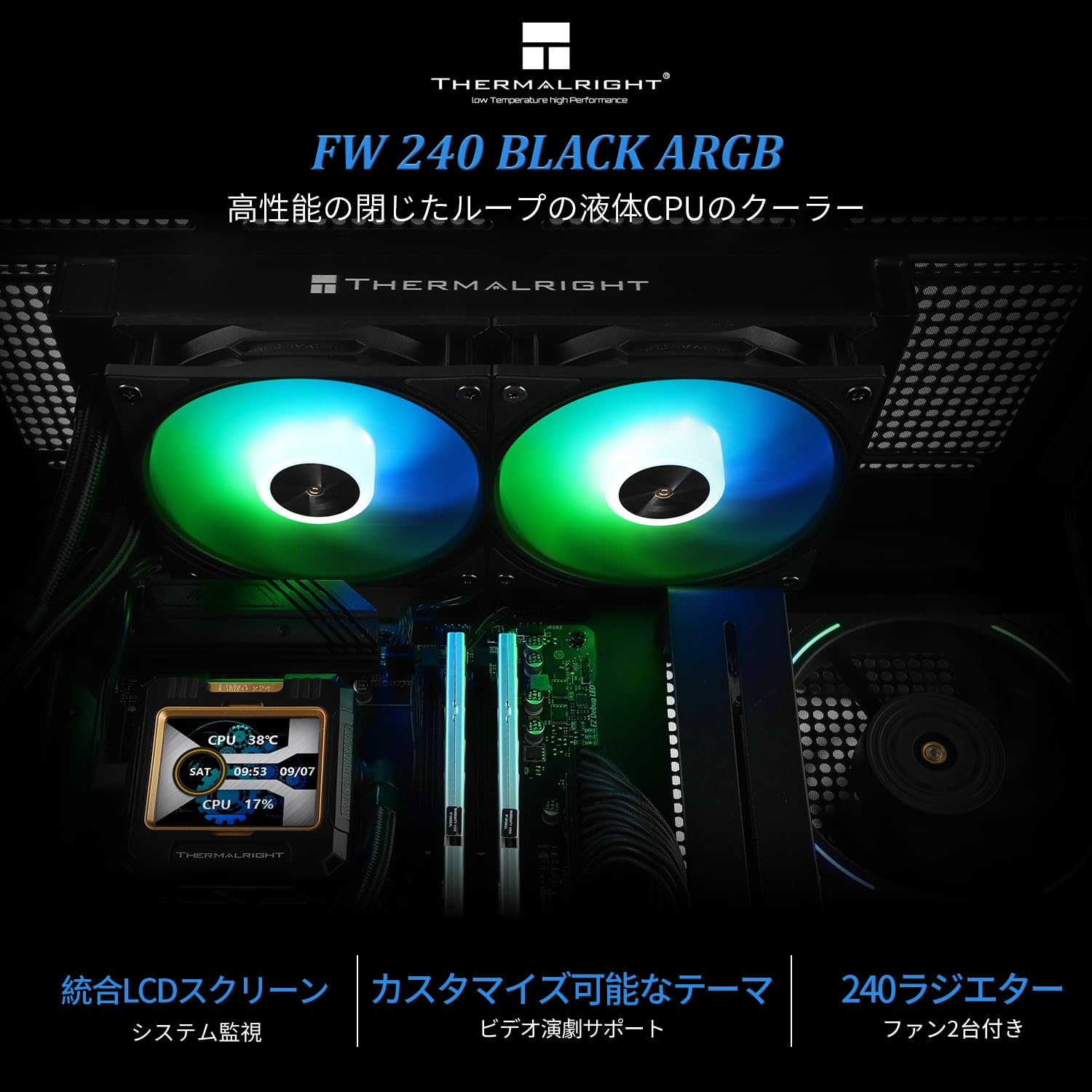 【特価在庫】Thermalright FW 240ブラックARGB CPUウォータークーラー、2000RPMの2つのPWMファン、320 * 240解像度のIPS LCDスクリーン、液体CPUクーラー、AMD用CPU PC Aioクーラー:AM4 / AM5 / Intel LGA1700