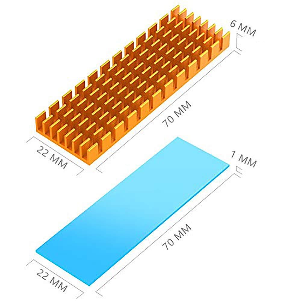 CTRICALVER M.2 ssdヒートシンク 導熱接着シート付き 熱暴走対策 冷却ラジエーターフィンCPU ICチップ 回路基板 LEDアンプに適用 アルミニウム 70mm×22mm×6mm (2個, 金)