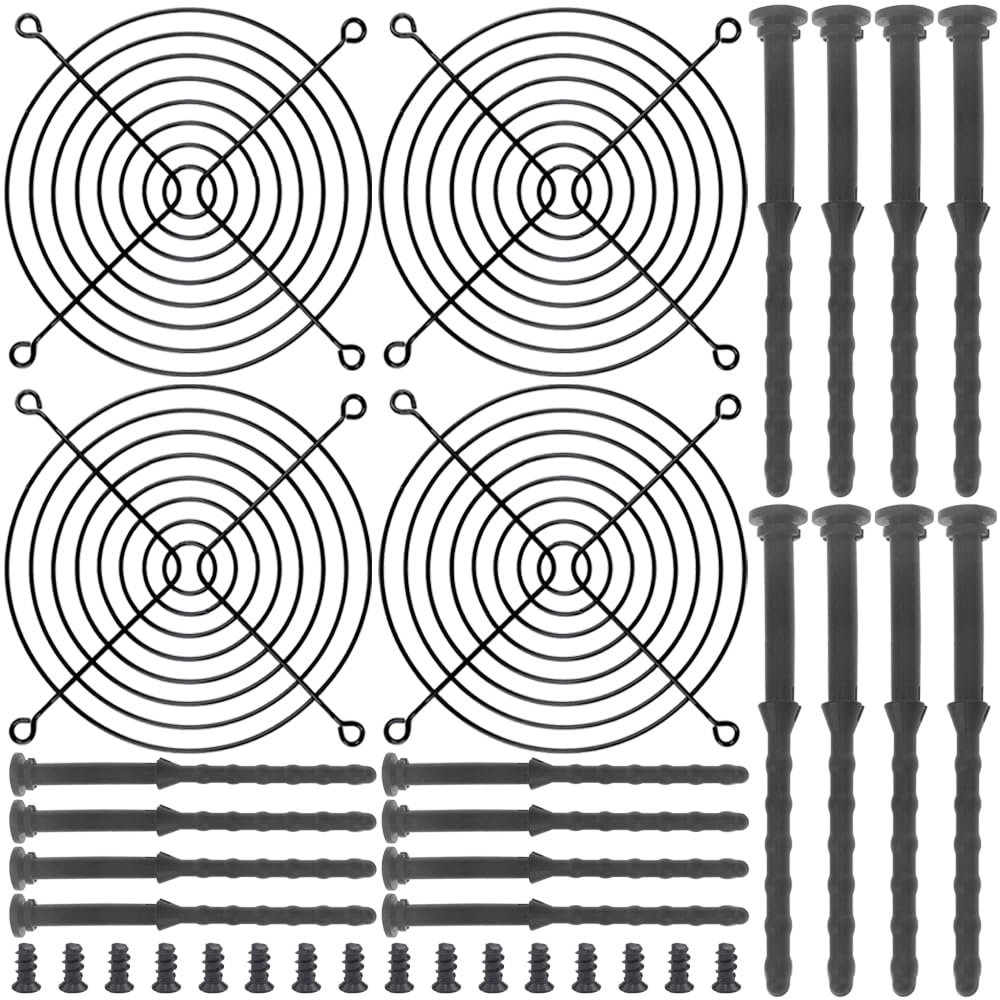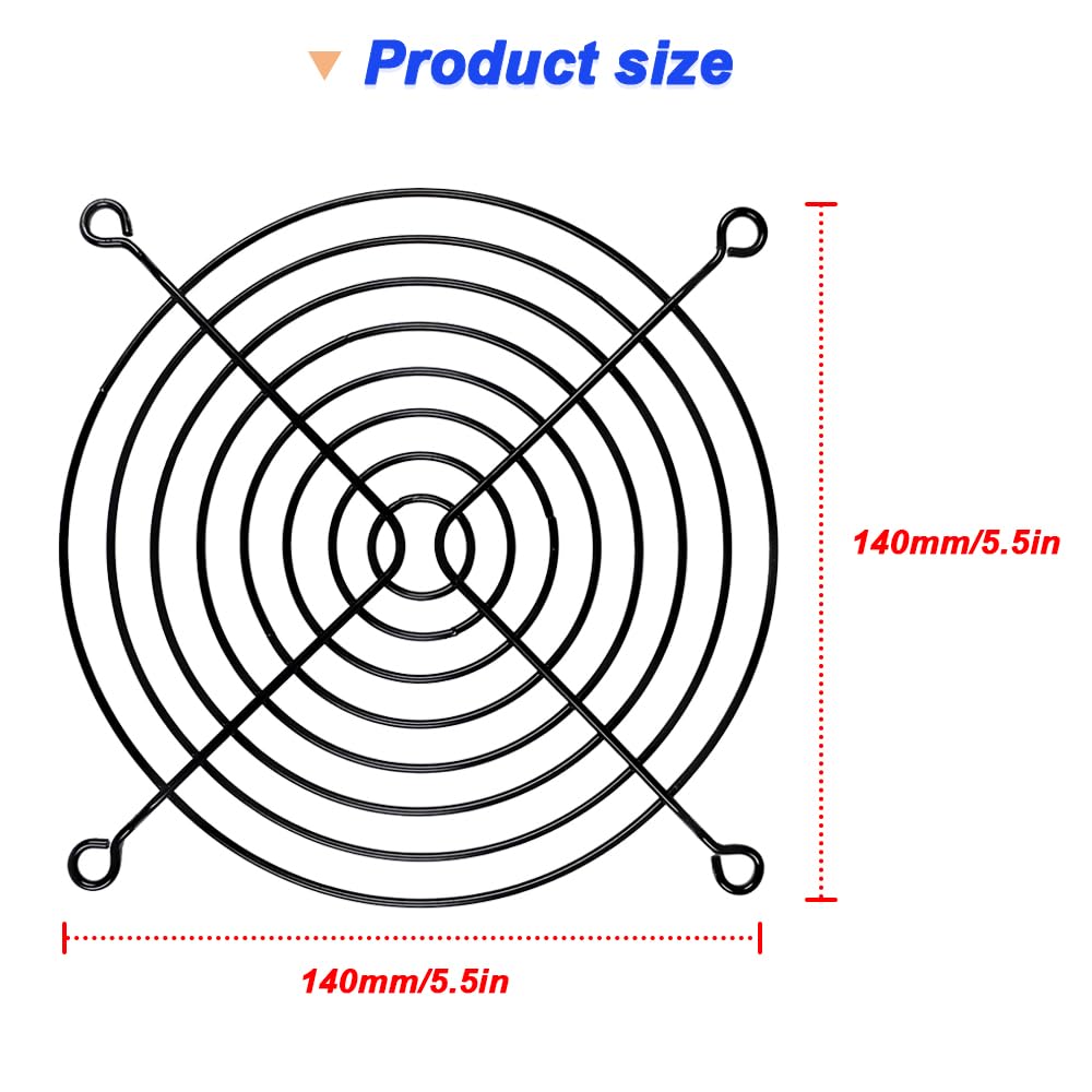 140mmブラックフィンガーグリル、PCコンピュータ冷却ファングリル140mmガード保護カバー、ネジ付き、ゴム製PCファンネジ(4パック)