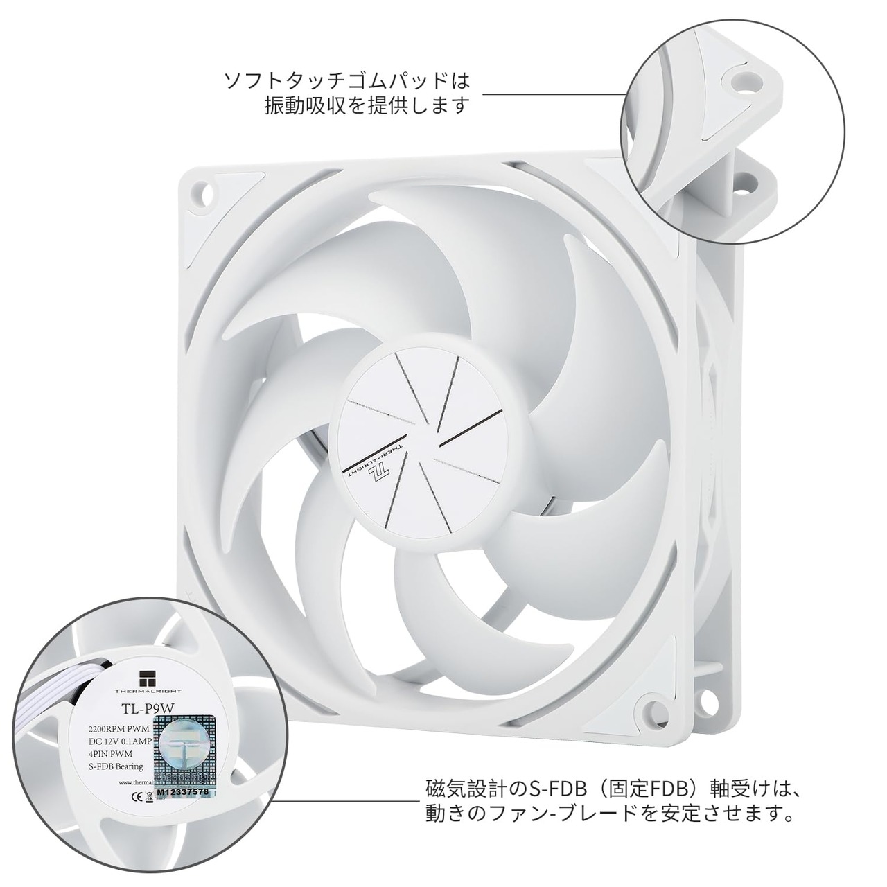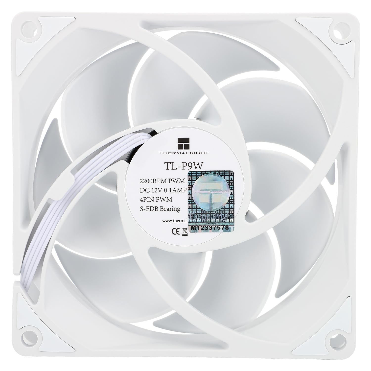 Thermalright TL-P9W CPUファンコンピュータケース冷却静かな4PIN PWM、高性能92mm静音クーラーファン、2200RPM速度(白)