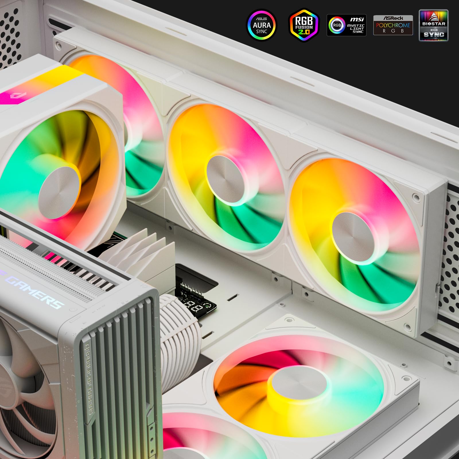 【セール】upHere PCケースファン 360mm 連結型 5V3ピンARGB pc冷却 12cm cpuファン 4ピン デイジーチェーン対応 静音 PWM 600-1650RPM DC12V 白い【U3TC3】 | GIGATERA