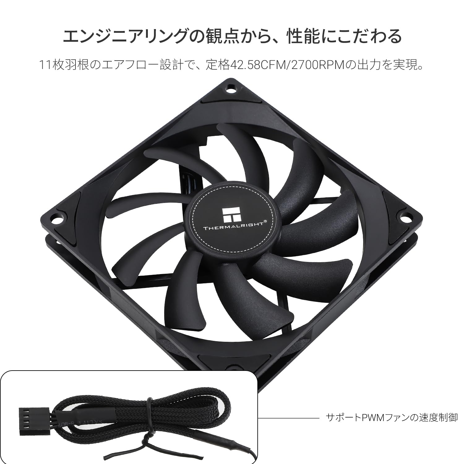 【高性能冷却ファン】4 PIN PWMファンケーブルコネクタを通じてマザーボードを自動速度制御し、マザーボードの温度に基づいて速度を決定することができ、最高速度は2700 RPMに達することができる。