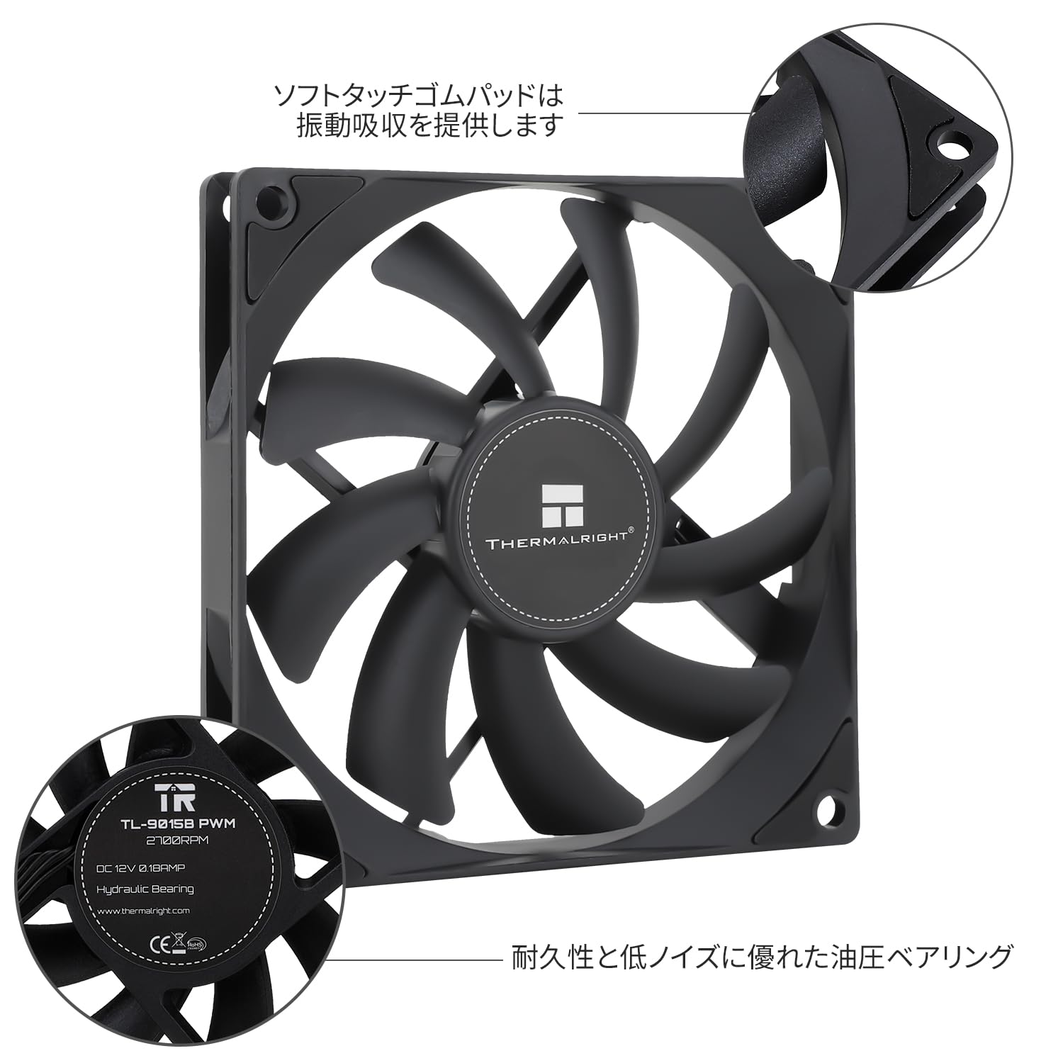 Thermalright TL-9015B CPUファンコンピュータケースファン静かな4ピンPWM PCファン、15mmのスリムラインクーラーファン、2700RPM速度、90mm CPU冷却ファン(ブラック)