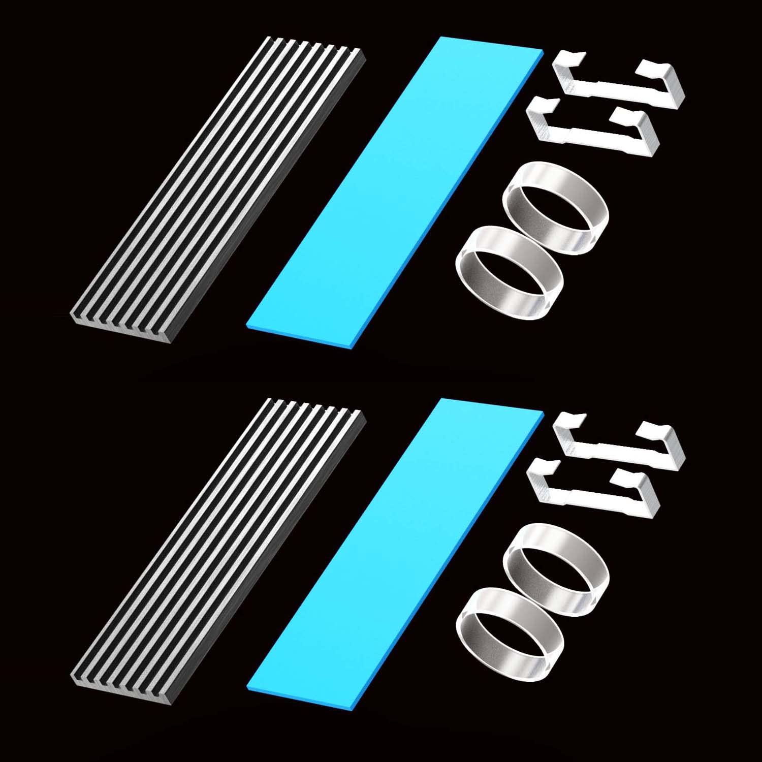 【熱伝導パッド付き】 サーマルパッドはM.2 SSDとヒートシンクボディの間に配置され、M.2 SSDからヒートシンクボディに熱を伝導します。低粘度、熱伝導性、絶縁性があり、SSDを傷つけません。