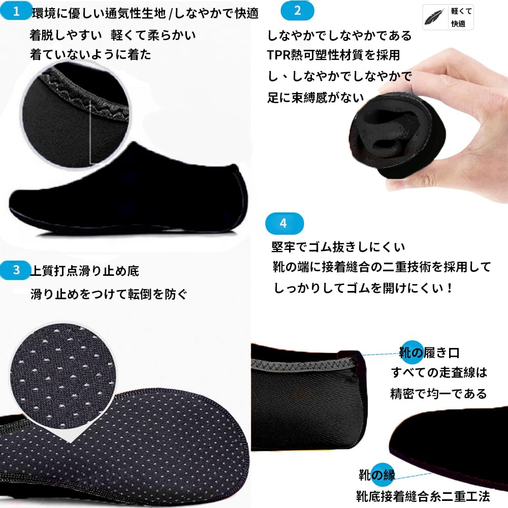 【柔らかい素材、快適】柔らかい素材を使って、軽量で履き心地が良いです。柔軟性が非常によくて、360°/720°自由に曲げることが可能で、靴下のようにぐるぐる丸めてコンパクトに収納できます。また、丈夫で滑りにくいゴム底なので、強力なグリップ力で