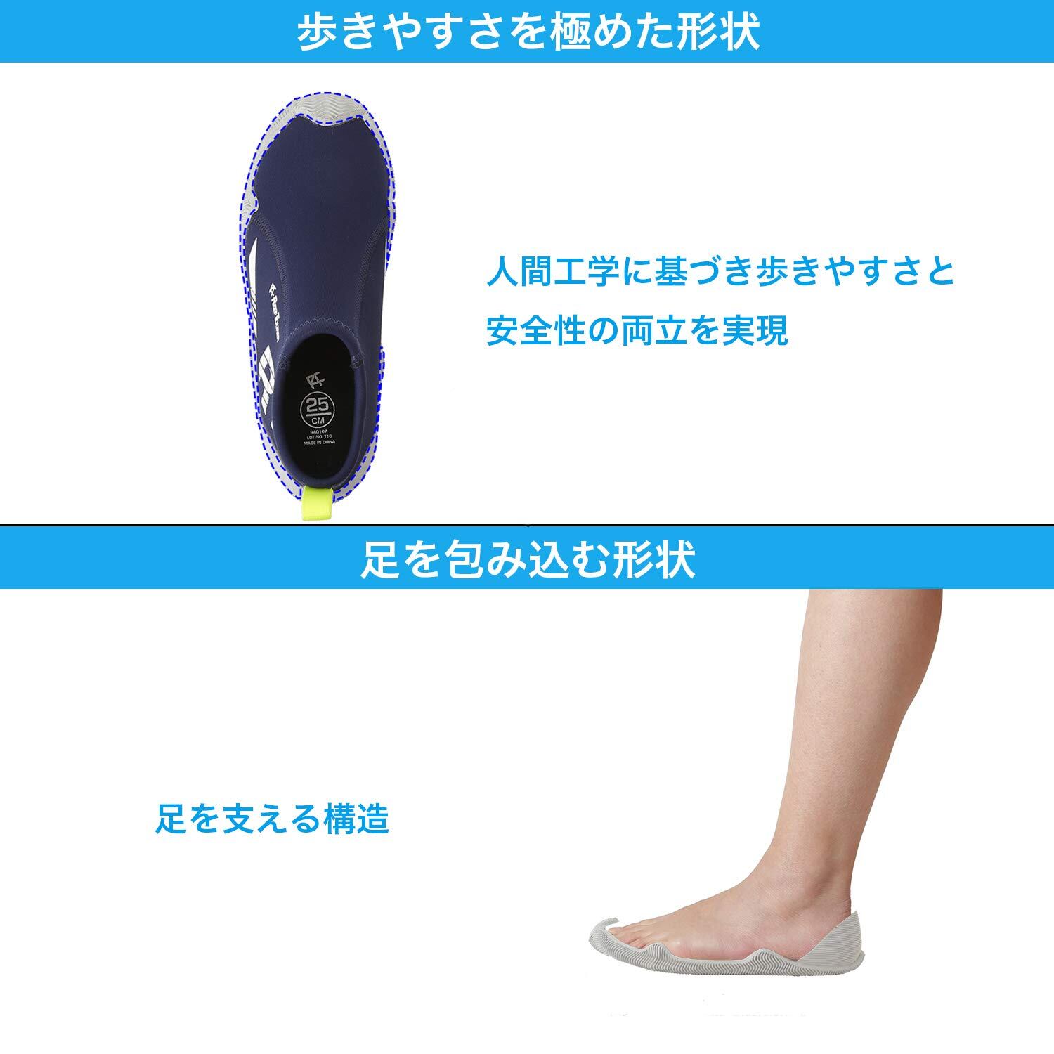 特徴1:排水穴付きで速乾性の高いマリンシューズ。人間工学に基づき歩きやすさにこだわったデザイン。伸縮性のある生地で快適な履き心地。