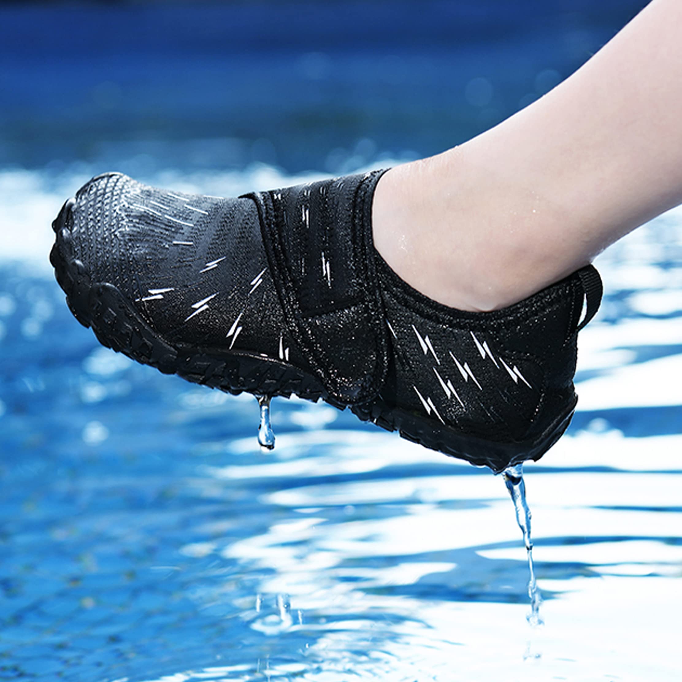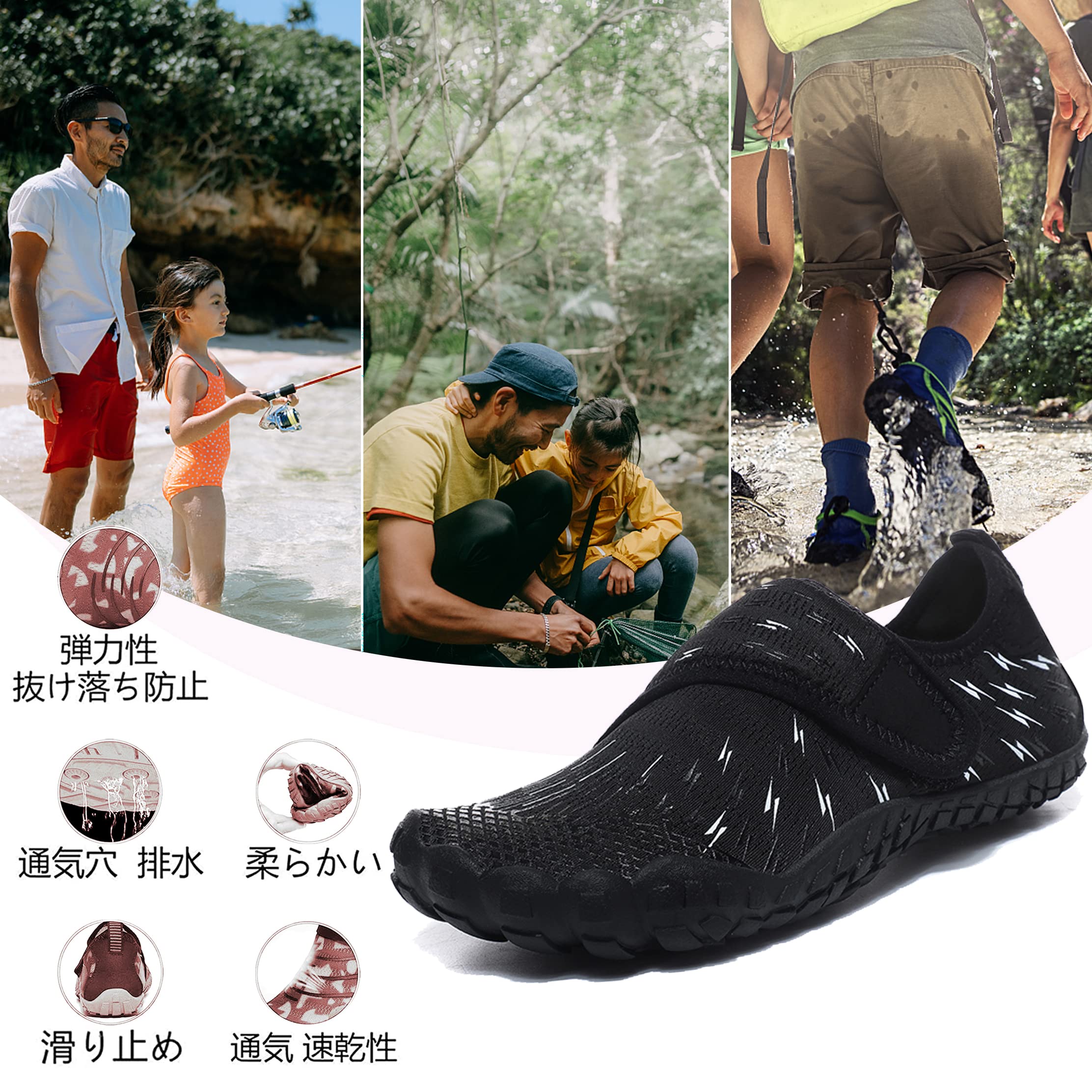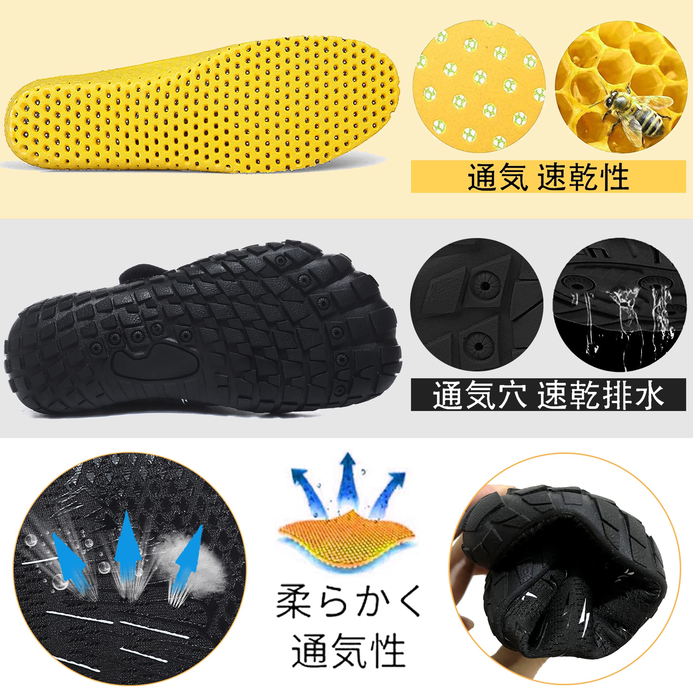 この靴は手軽く、クッションがよい。足に柔らかく履き心地よい。速乾ウォーターシューズは通気よく、スマートなデザイン 軽くて持ちやすい:手軽いウォーターシューズは柔らかい靴の甲と柔軟の底でもっと履きやすい。靴下を履いているように柔らかく快適。
