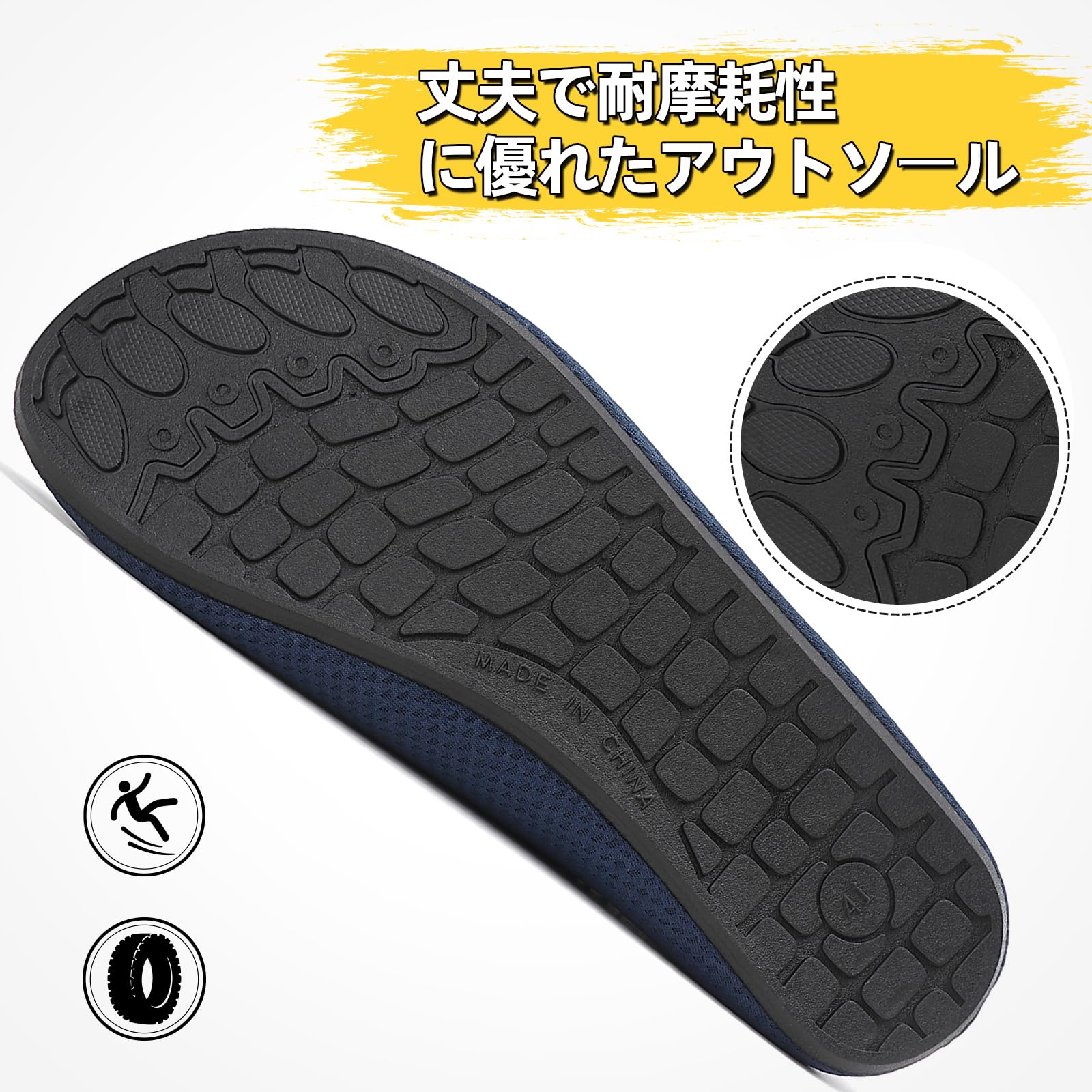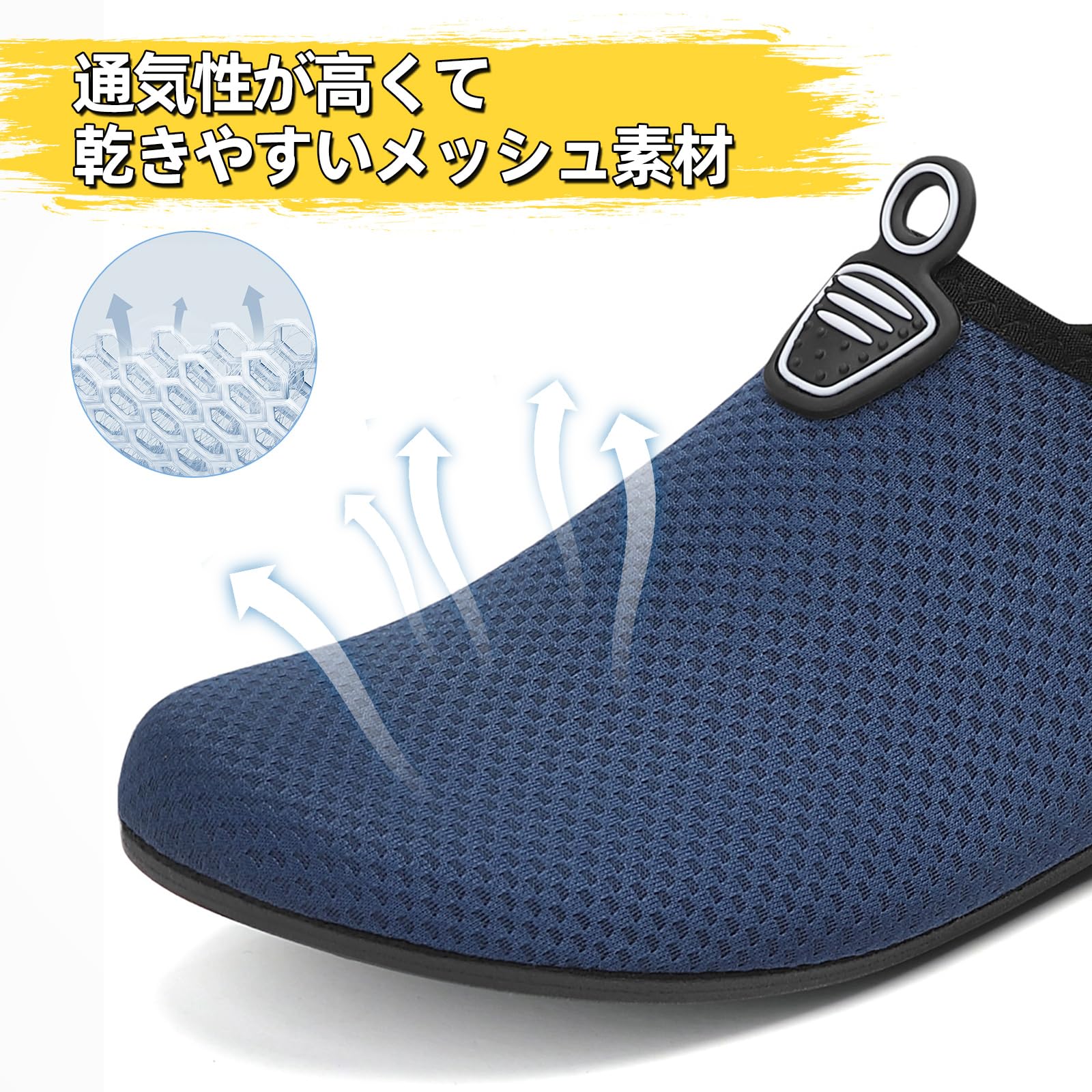 『速乾性』アッパーは通気性が高くて乾きやすく、吸湿性にも優れており、靴の中を快適に保つことが可能です。