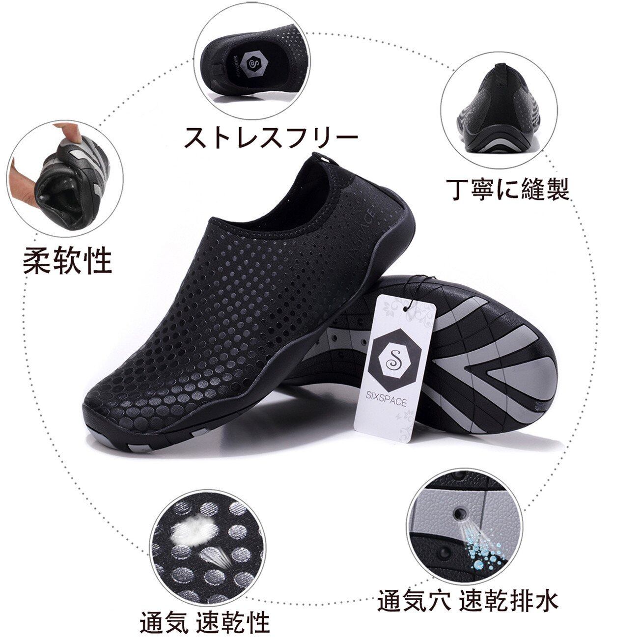 【特価】[SIXSPACE] マリンシューズ ウォーターシューズ 水陸両用 アクアシューズ シュノーケリング ビーチシューズ 軽量 通気 ヨガ サーフィン 男女兼用