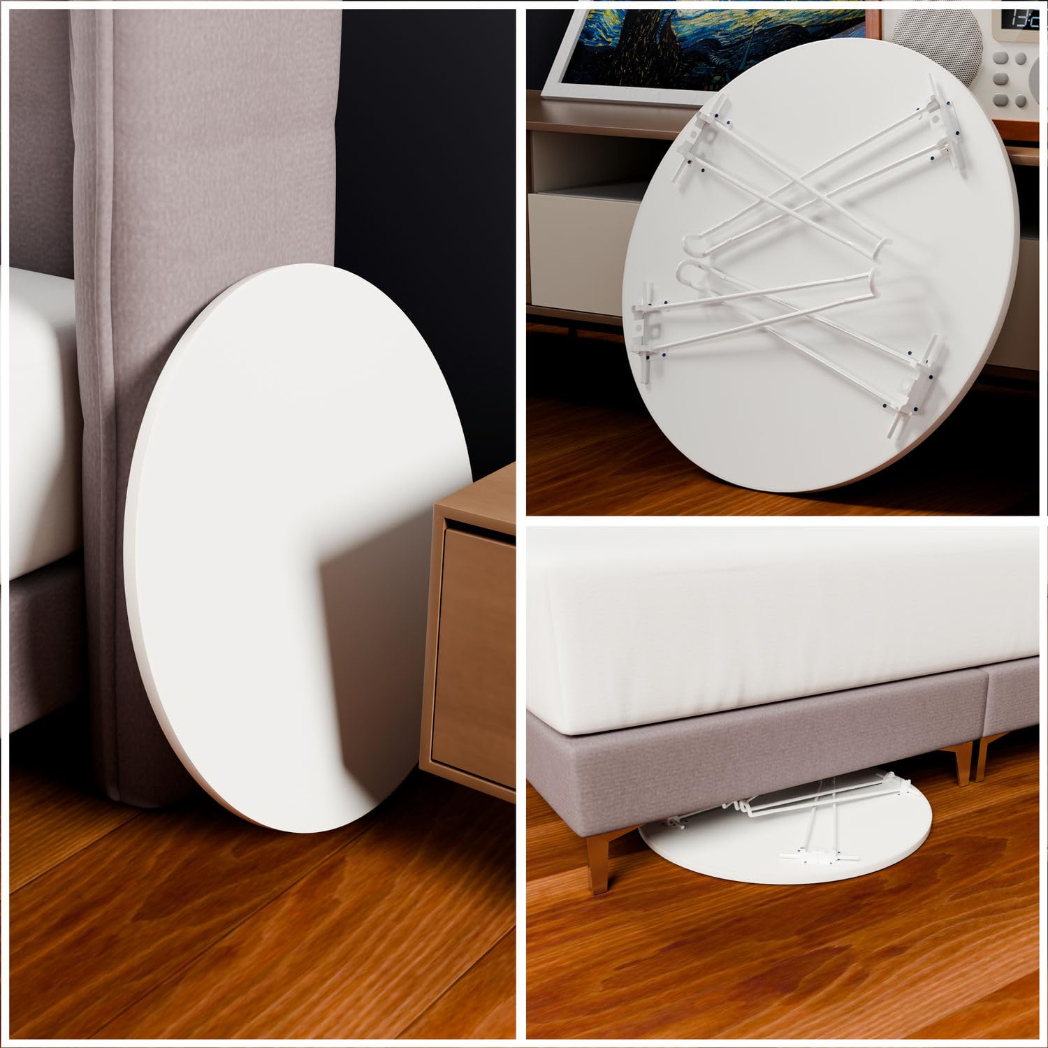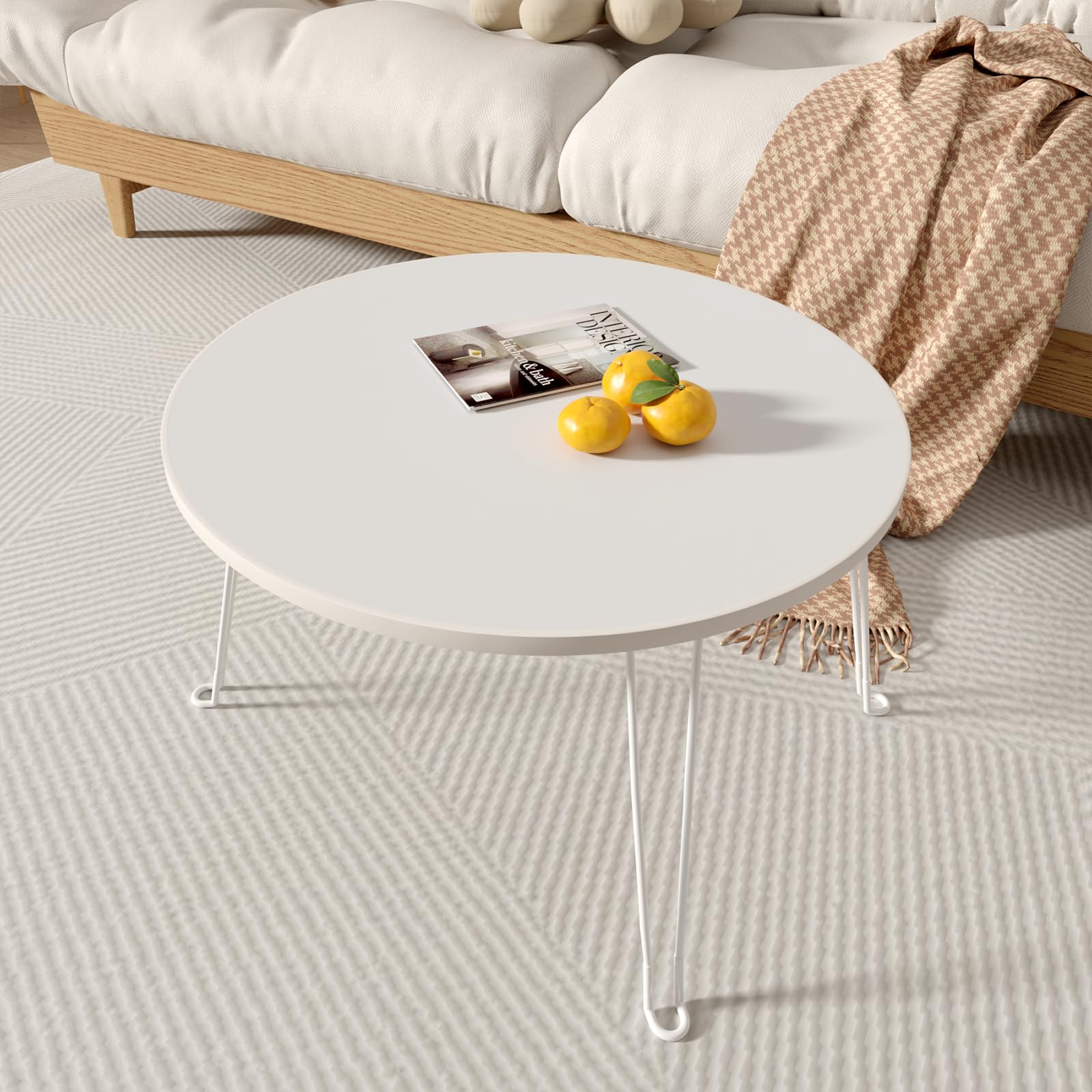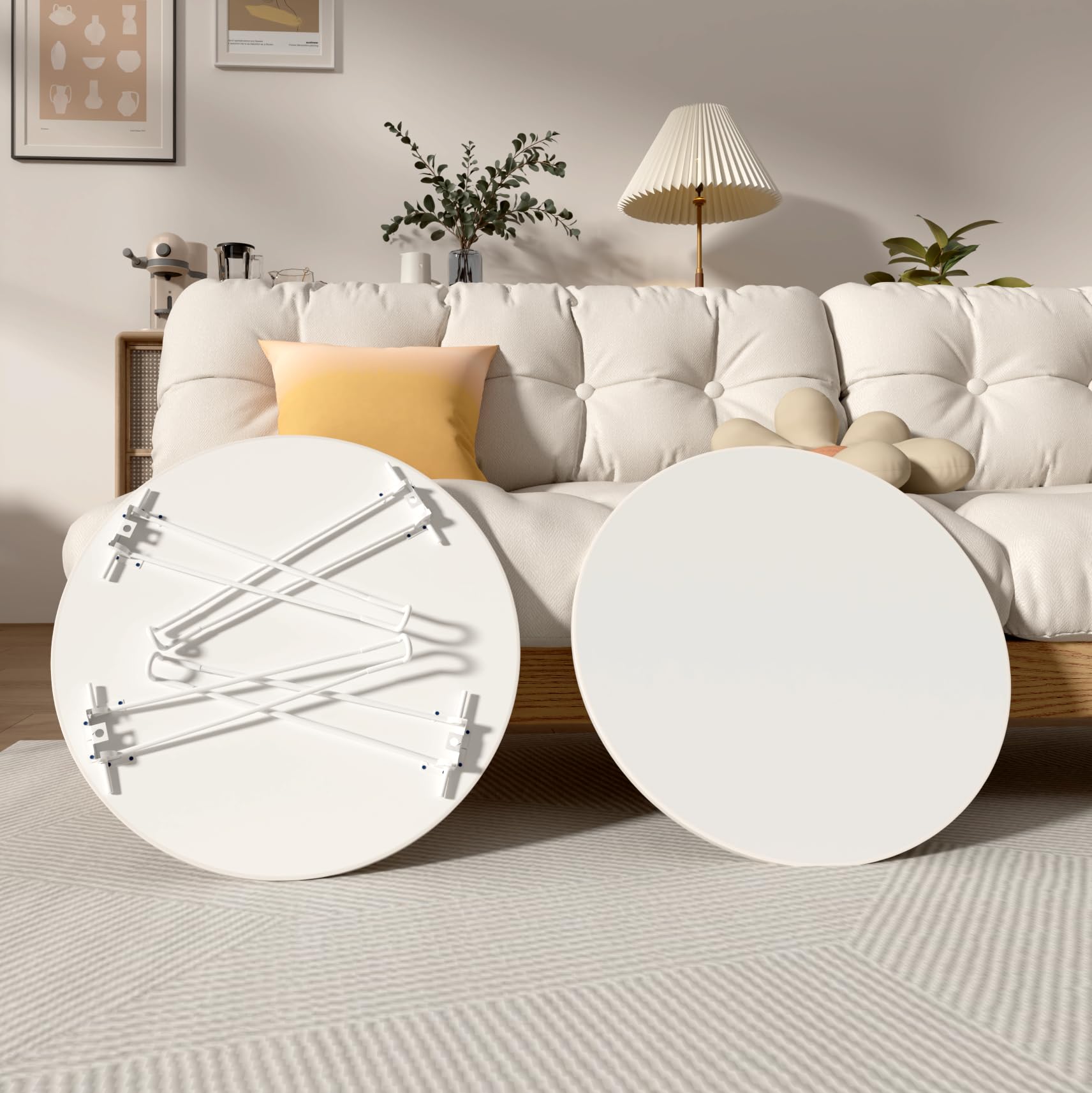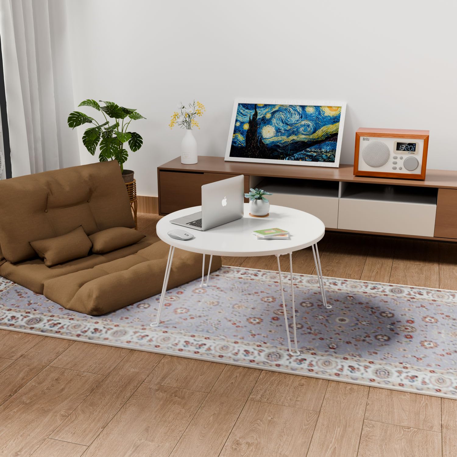 3.【多機能ミニテーブル活用術】 リモートワークデスク/こたつテーブル/床座卓として活躍。テーブル 丸 ローテーブル 軽量設計(5kg)で女性でも楽々移動可能。耐荷重50kgでノートPCや食器も安心。