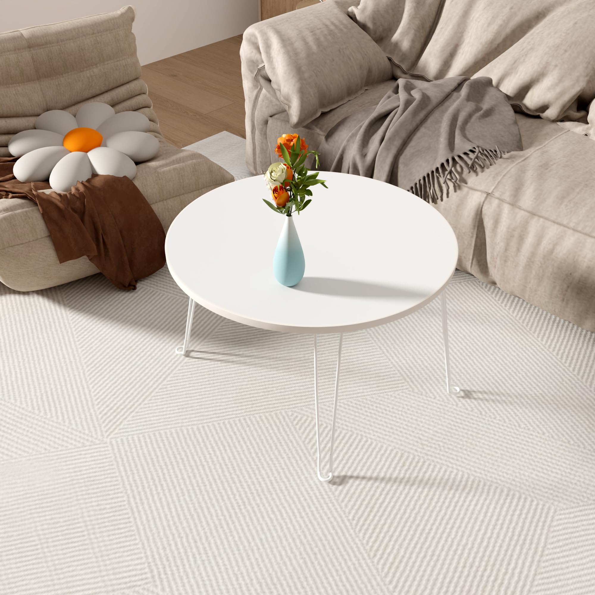 ローテーブル白 折りたたみテーブル 丸 木製 机 一人暮らし 可愛い おしゃれ まるテーブル 組立簡単 (丸い形)