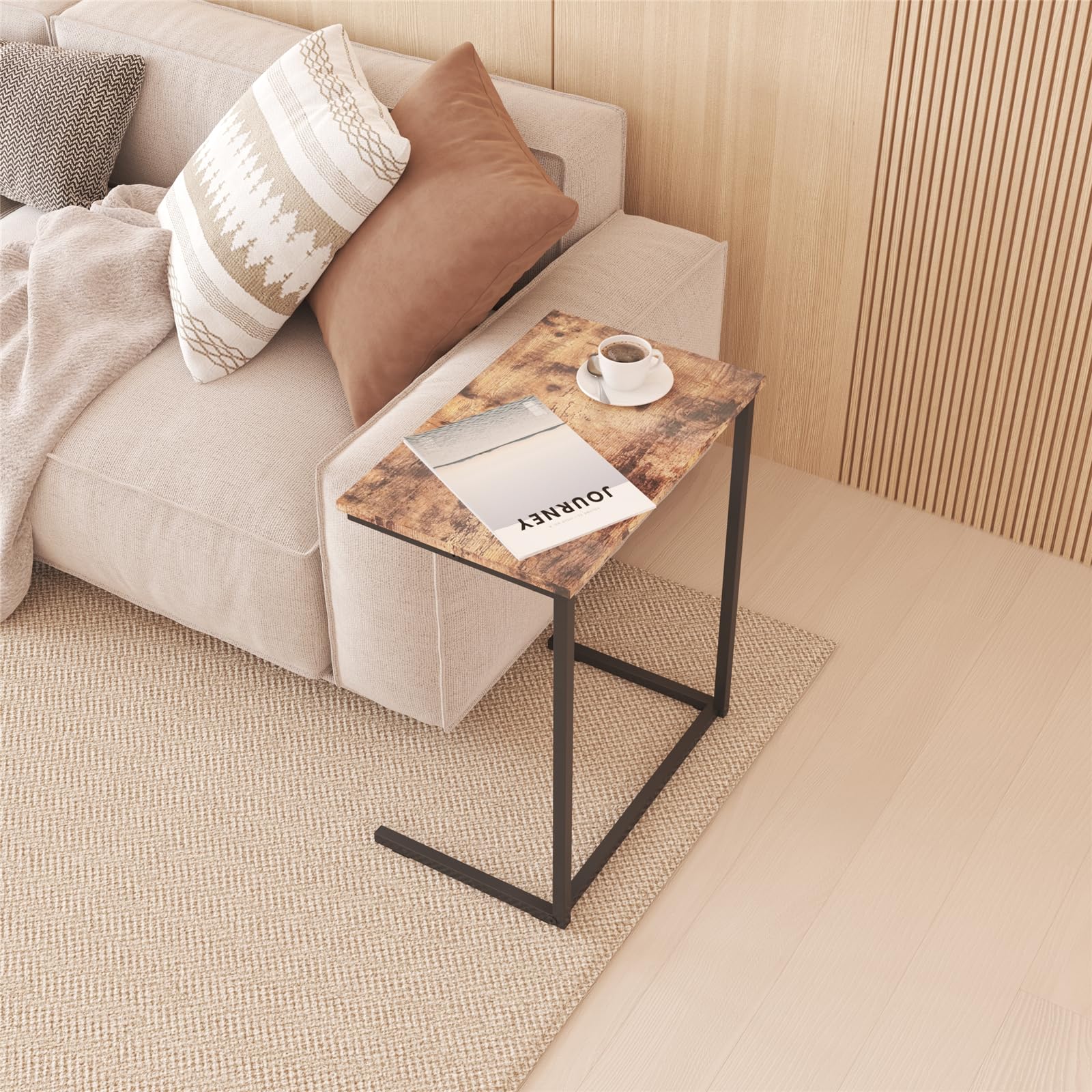 【コ字型テーブル】コの字型デザインで、脚を組んだり伸ばしたりしてもポールが邪魔にならないです。 また,レッグフレームがソファやベッドの下の隙間に入れることができて、見た目もスマートに使えてソファやベッドの下に置くのが簡単で、コンパクトに空間を十分に活用してになります。