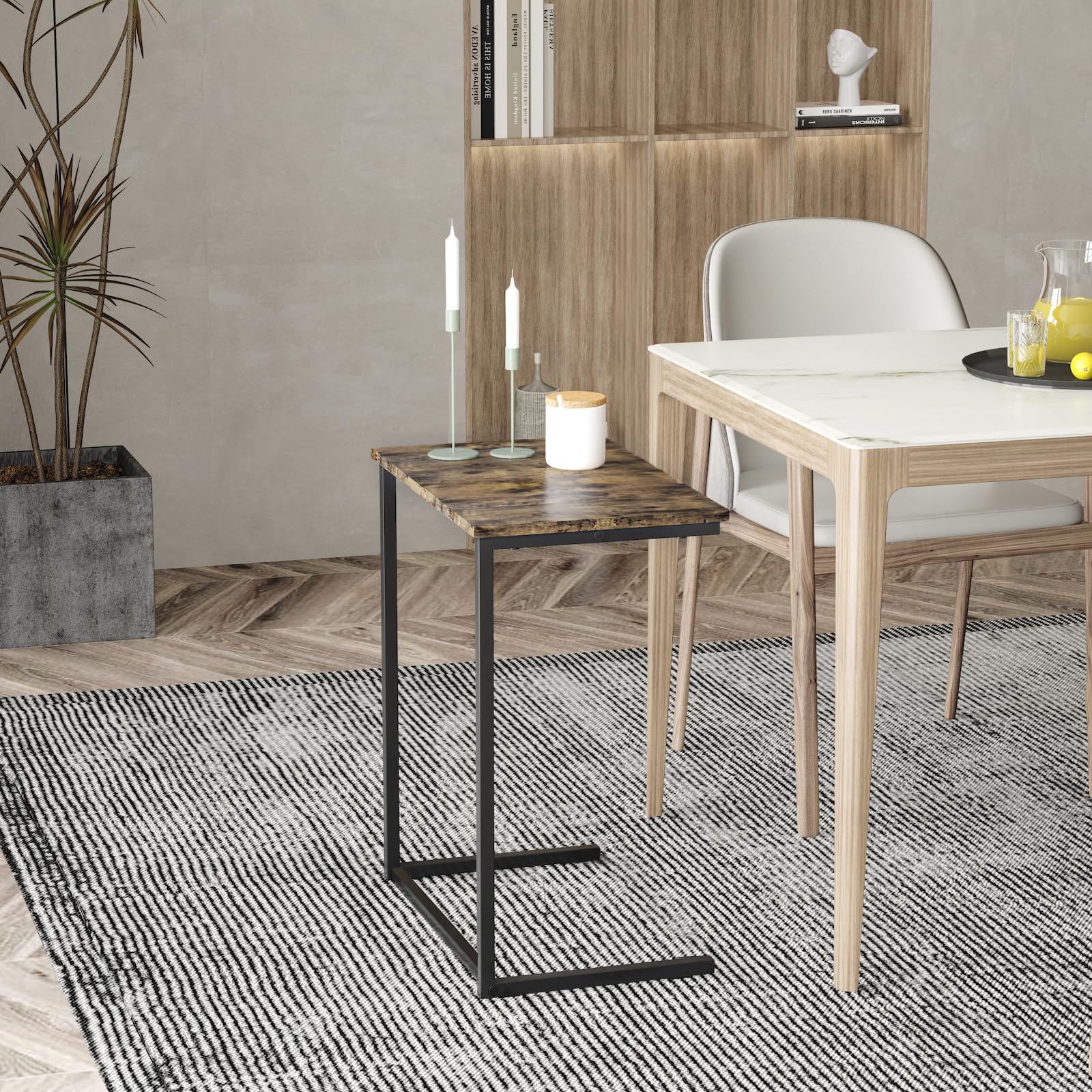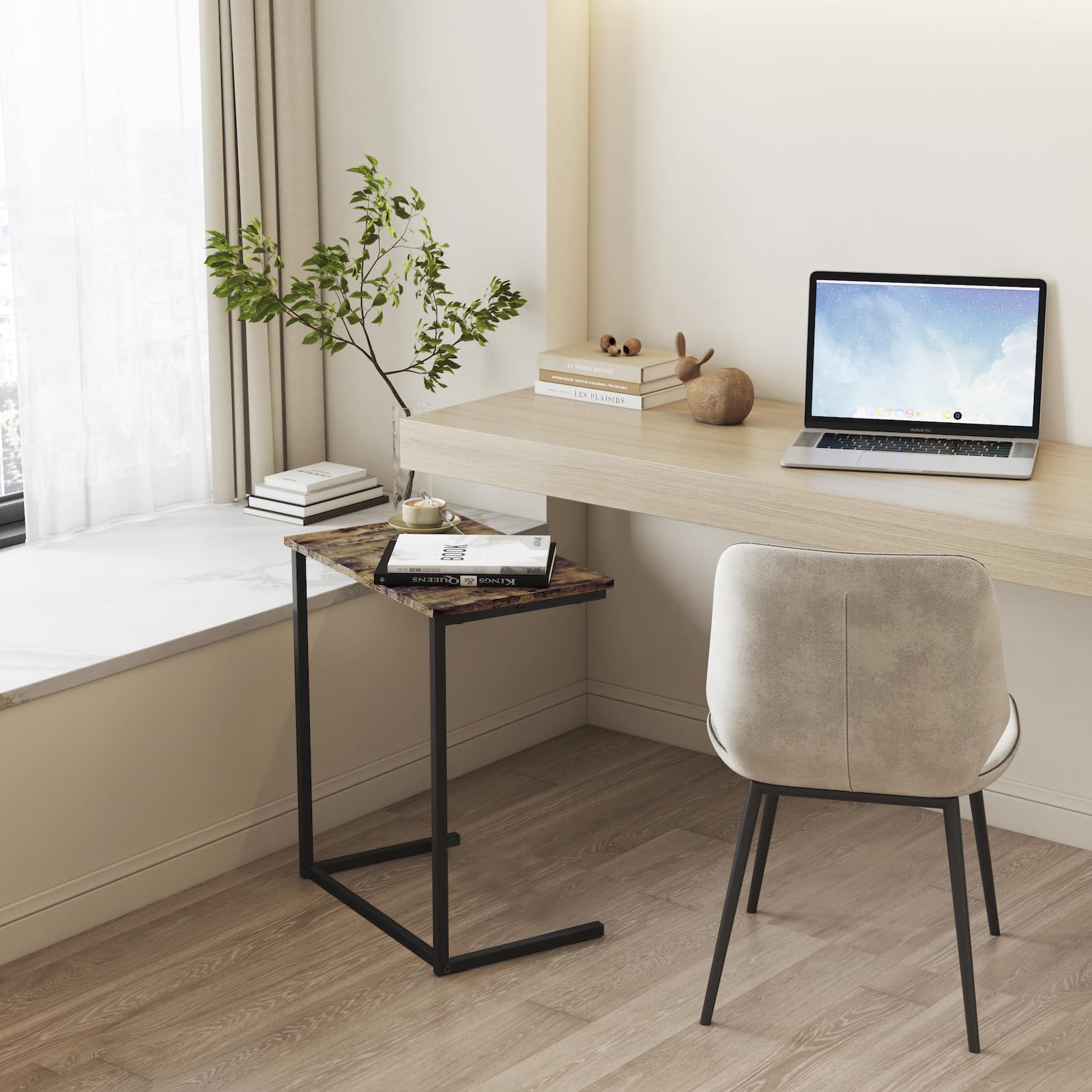 【様々な場所に対応】リビングでソファーサイドテーブルとして、仕事部屋で仕事デスク、パソコンデスク、寝室でナイトサイドテーブルとして、ミニテーブルとして実用性や機能性も兼ね揃えたテーブルです。場所も取らず、いつでもどこでもリラックスやオフィスの時間を始めることができるように設計されています。