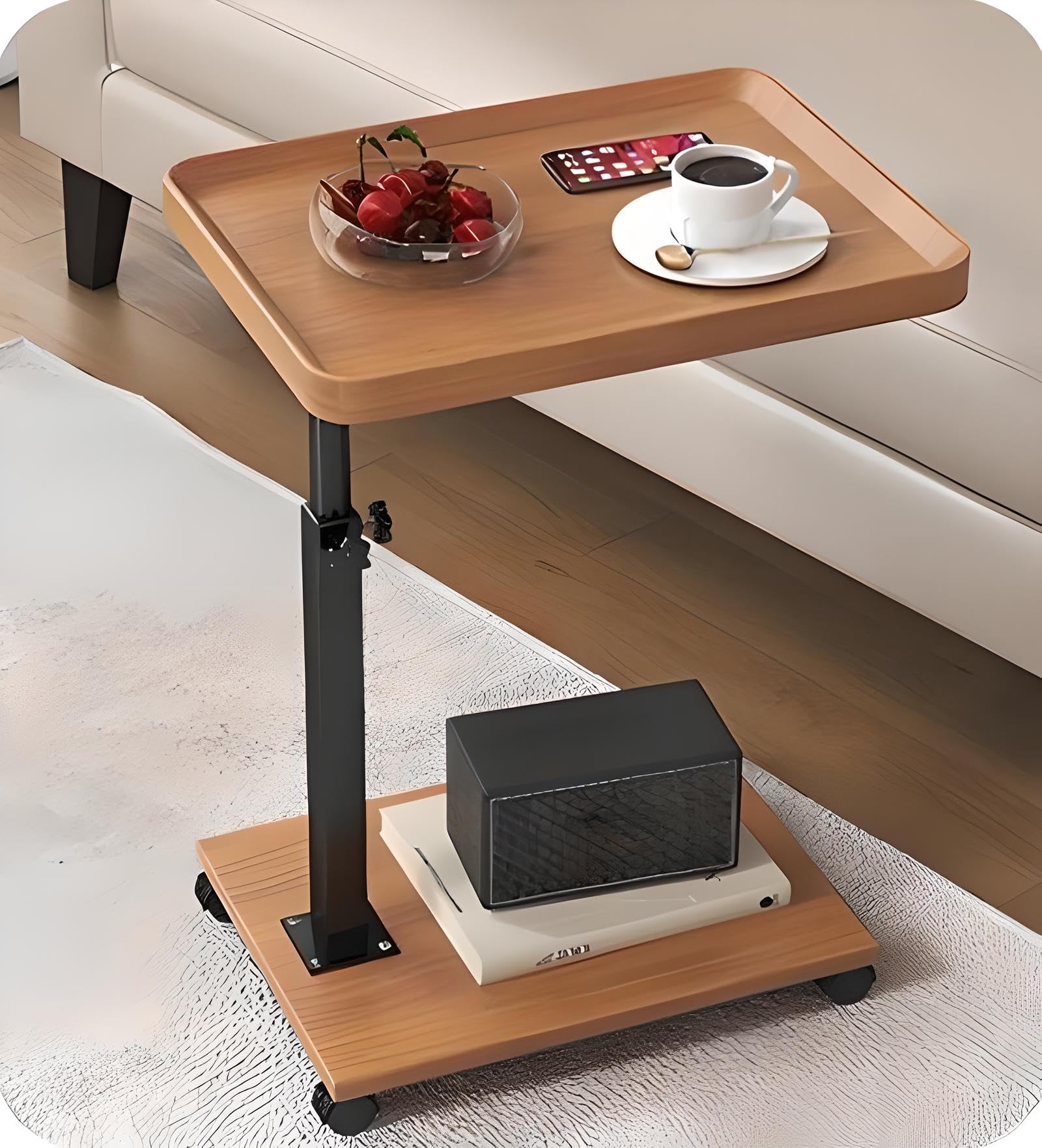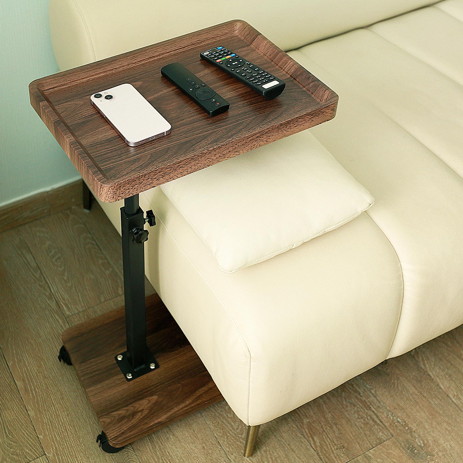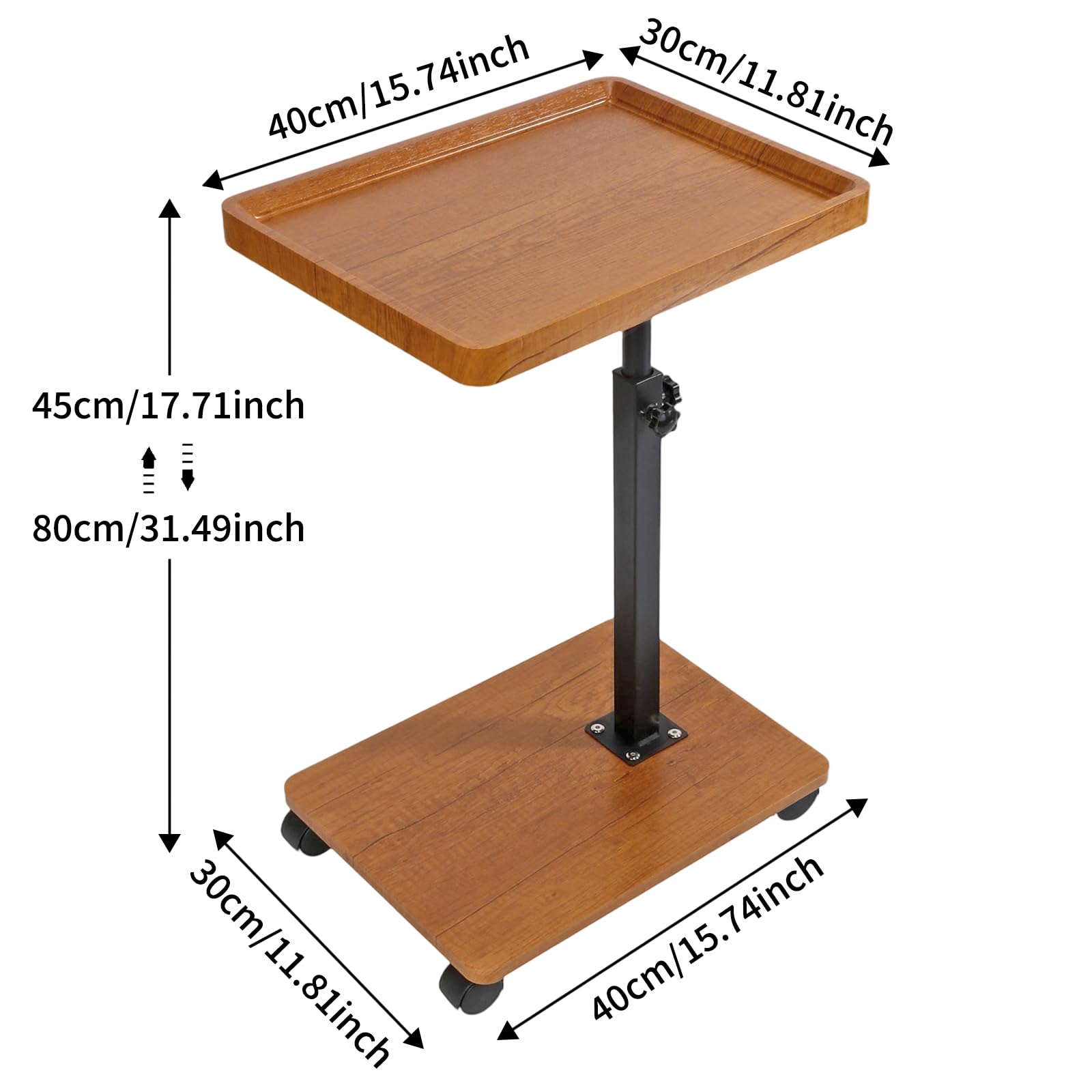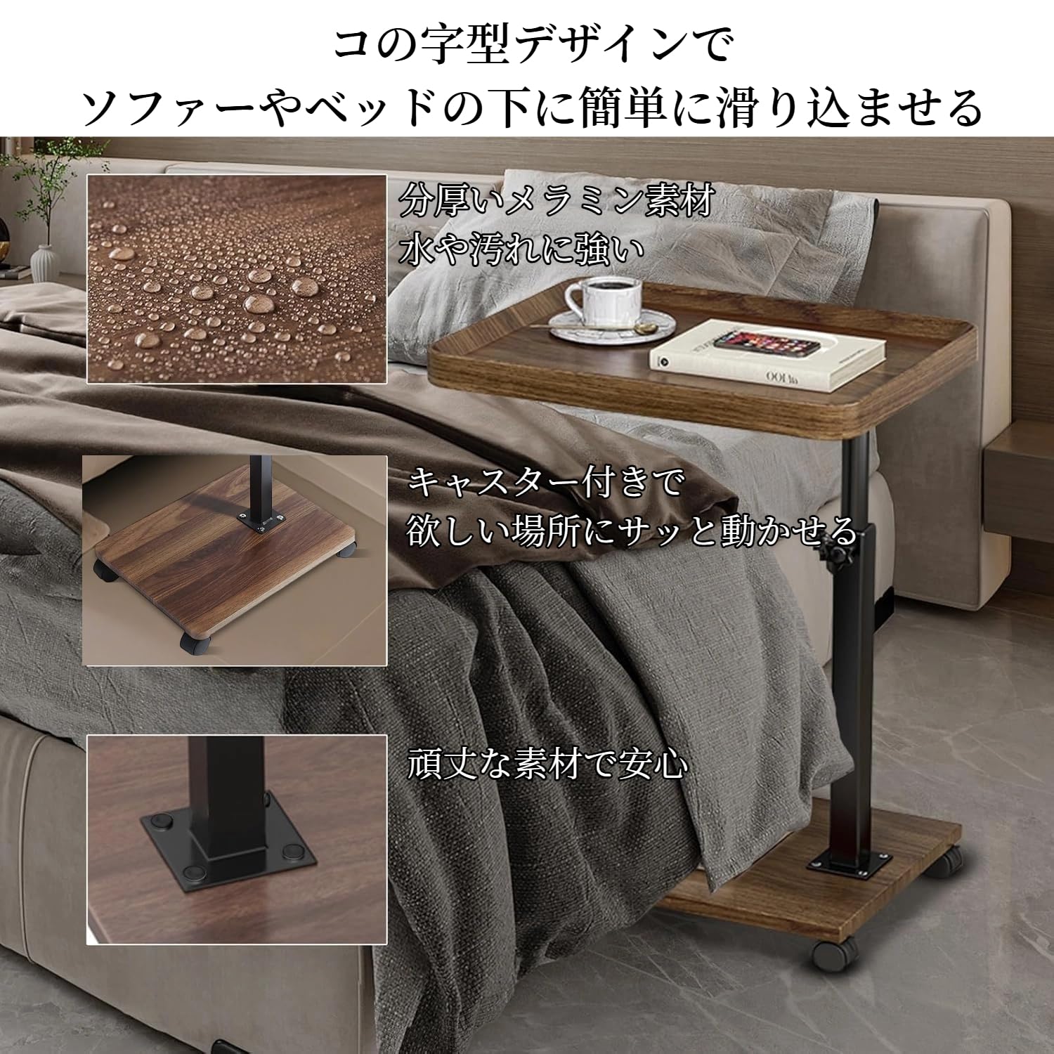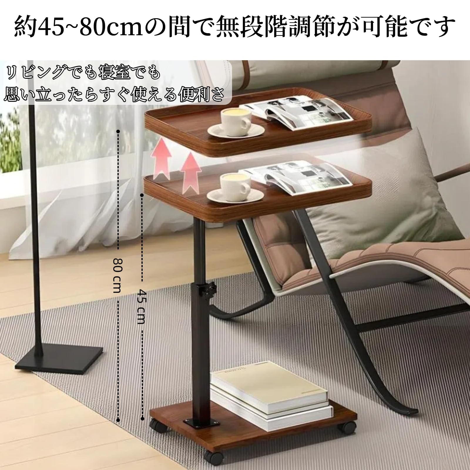 TAIVINN サイドテーブル キャスター付き ベッドサイド テーブル 昇降式 木目調 簡易テーブル コの字型 高さ調節可能 移動便利 小さい 一人暮らし 食卓 小型 (ナチュラル 40*30*45~85cm)