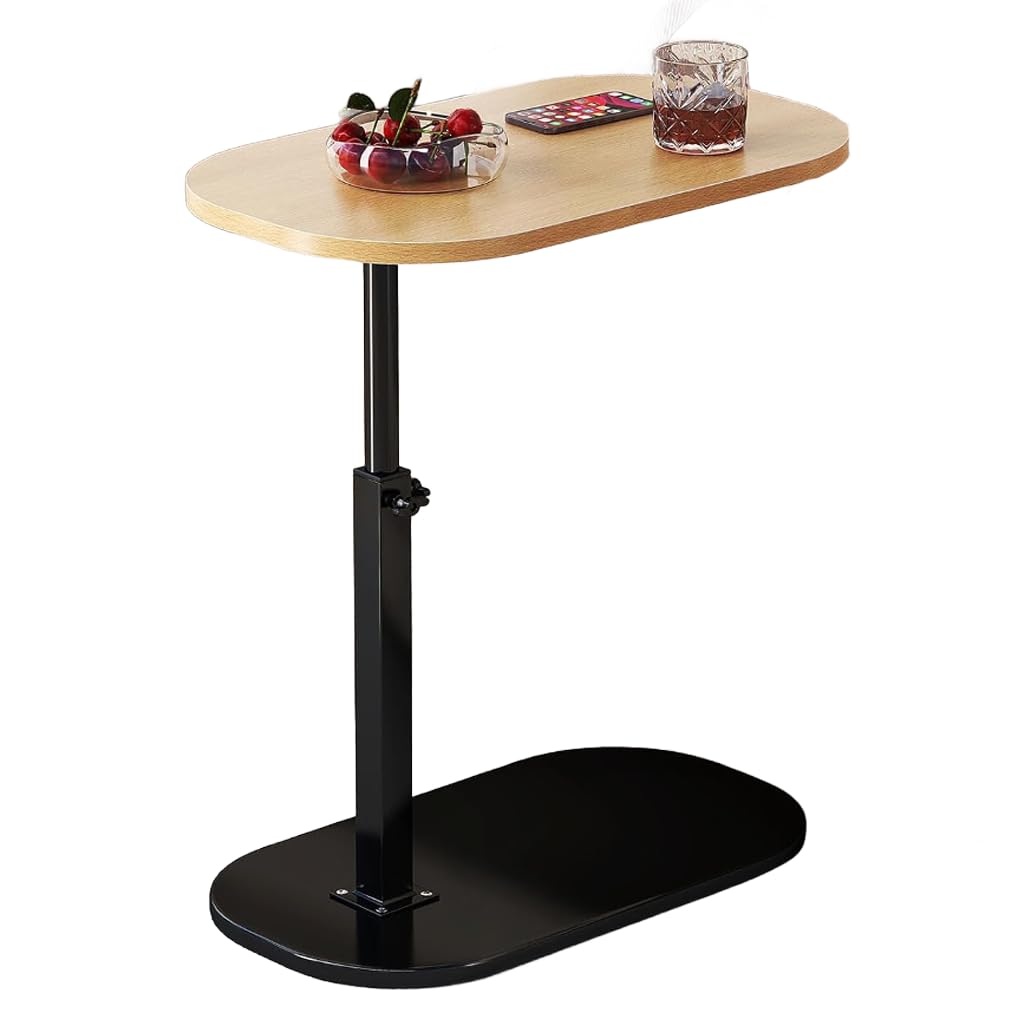 [SPobeap] 昇降式 サイドテーブル 無段階高さ調節可 差し込み ソファテーブル 寝室用 介護用 安定性 切りキズ防止 (原木色+ブラック)