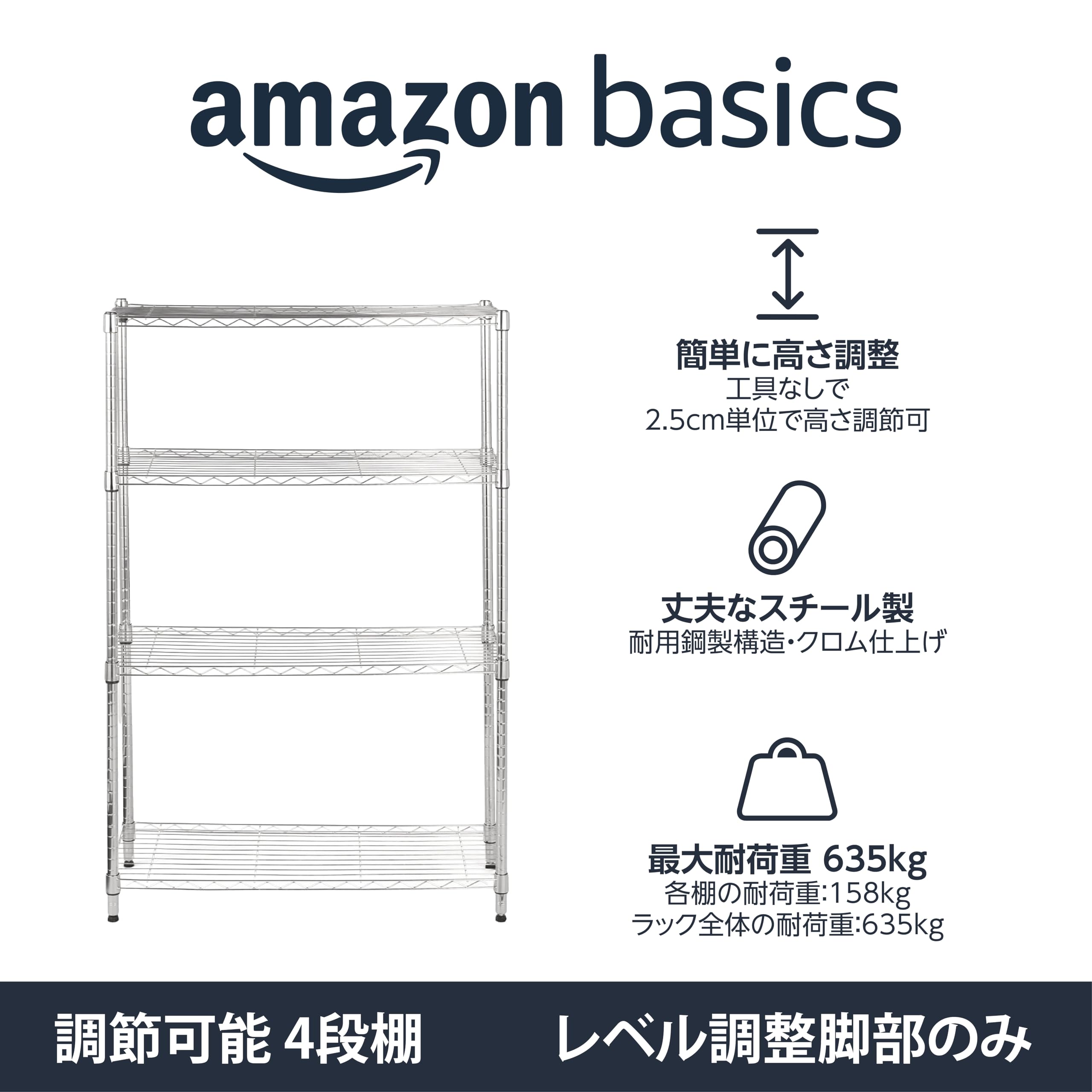 ベーシック 4段スチールラック 棚 メタルラック 耐荷重635kg 幅91.4 x 奥行35.6 x 高さ137.2cm クロム