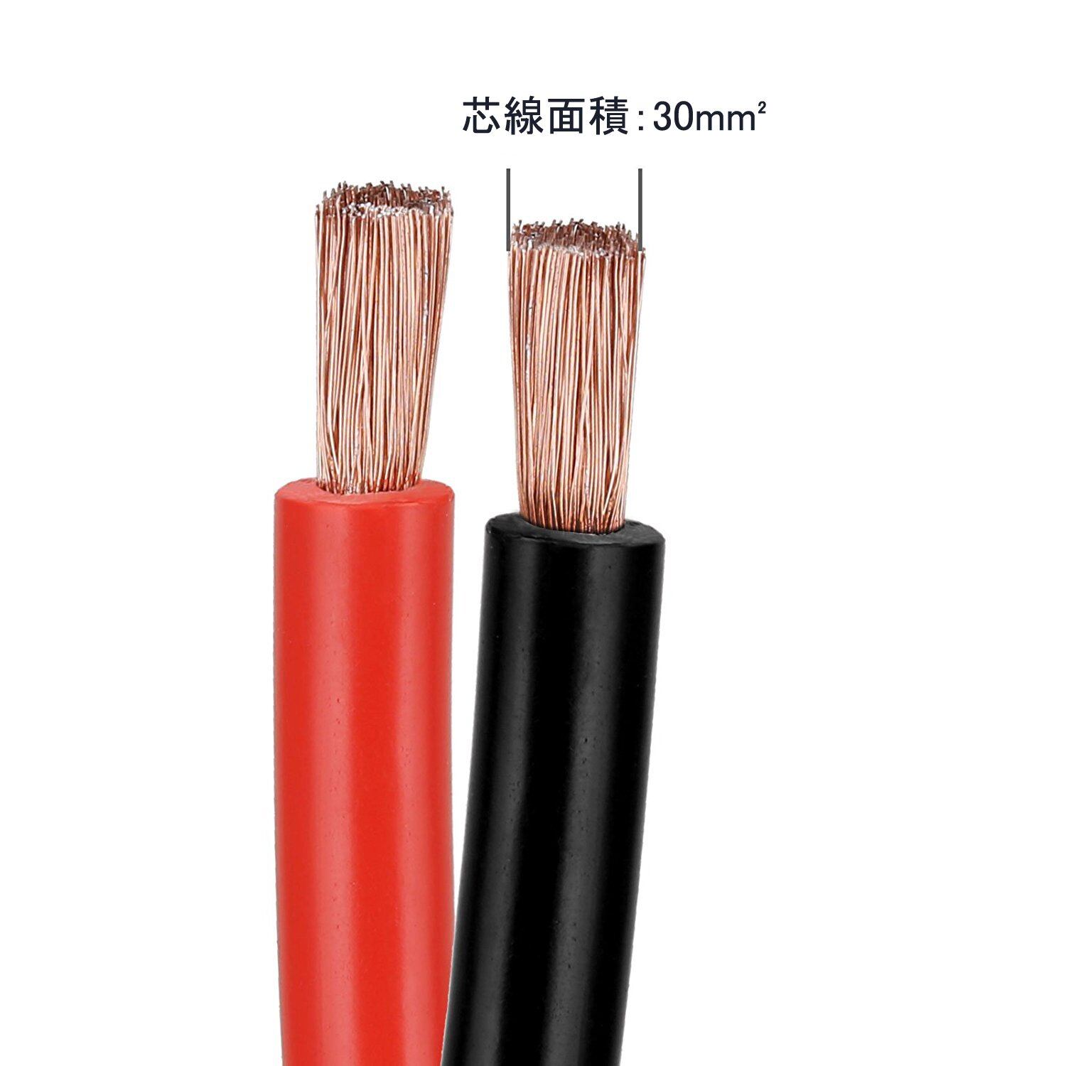 30mm2の芯線で、極太大容量600AMPまで対応できます。芯線が太いので大きな融通性をもち、発熱しないことでより安全作業。