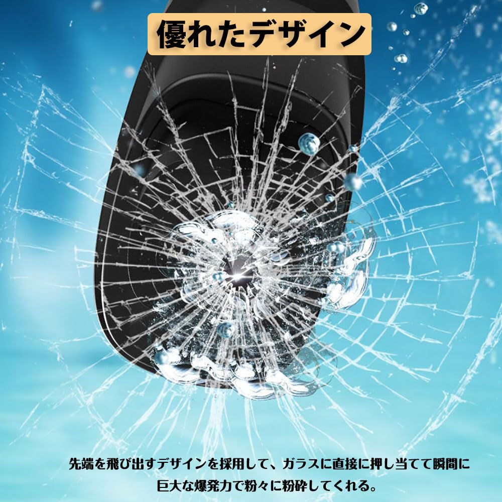【優れたデザイン】従来ハンマーとは違い、先端を飛び出すデザインを採用して、ガラスに直接に押し当てて瞬間に巨大な爆発力で粉々に粉砕してくれる。だから、水中での使用も可能。