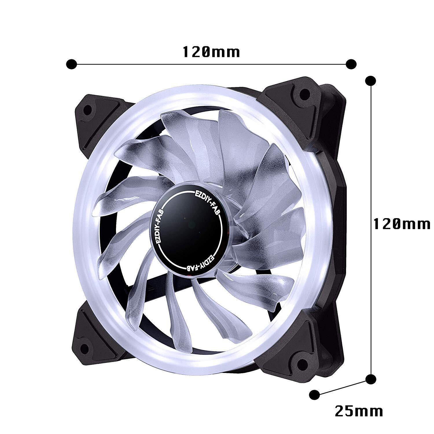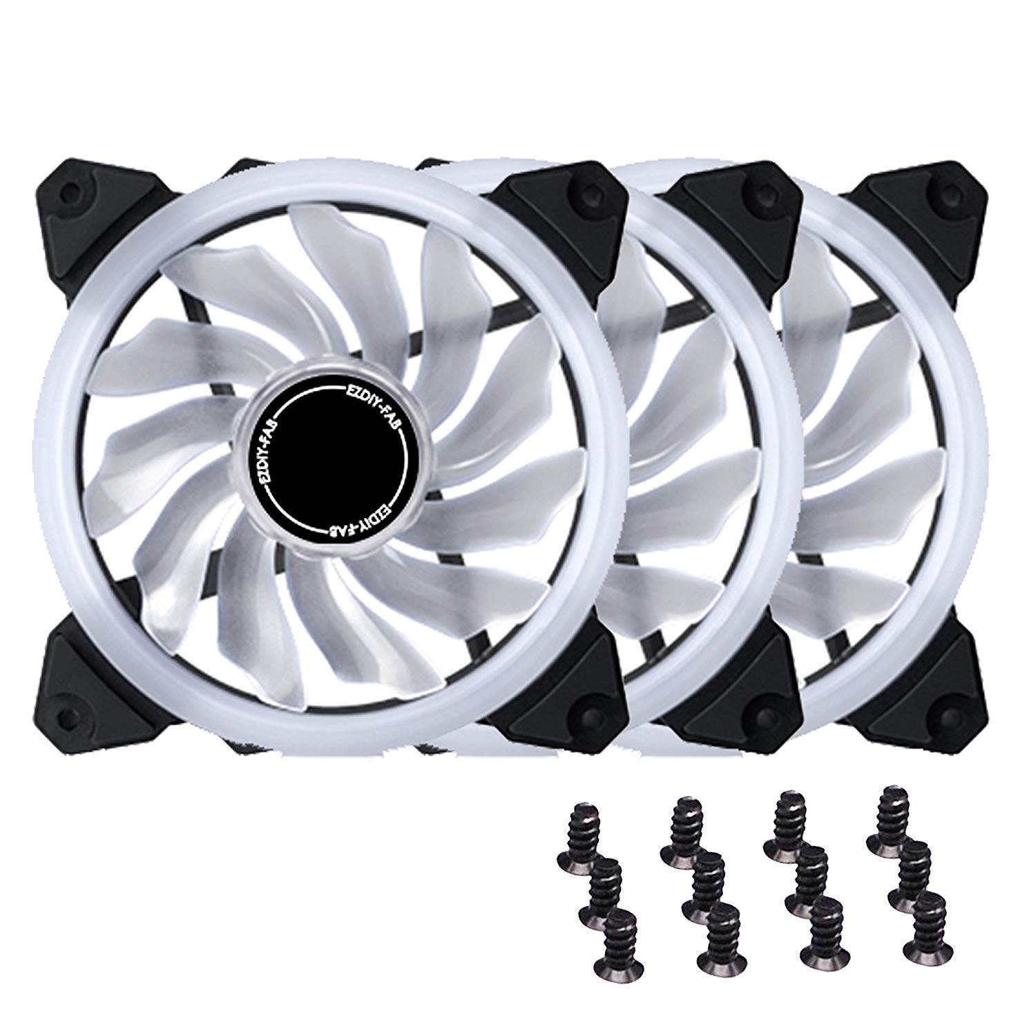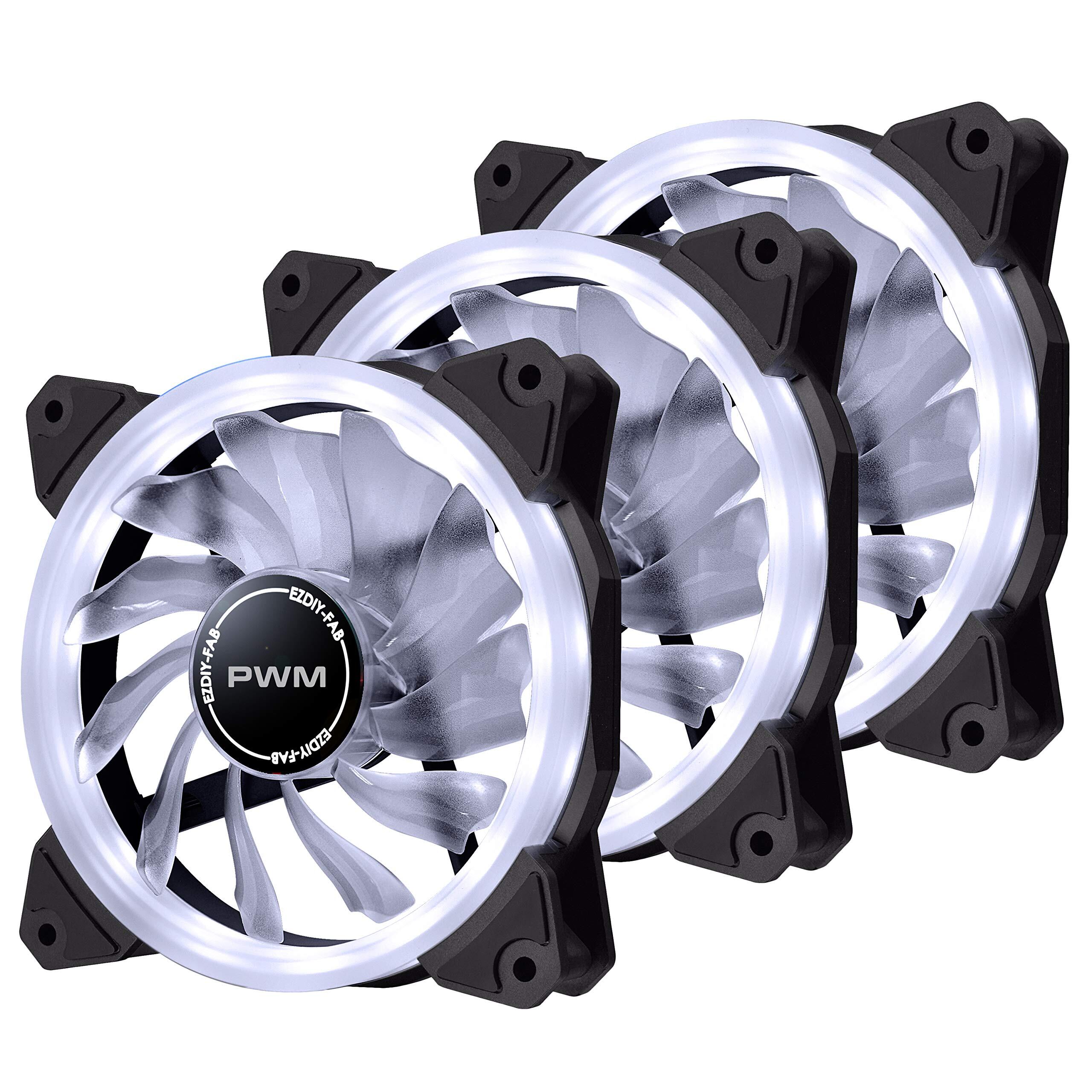 EZDIY-FAB 120mm PWM白色PCケースファン LEDリングファン 静音タイプ PCケース用白色LED - 3本1セット(3個白い 4ピン) デスクトップ対応
